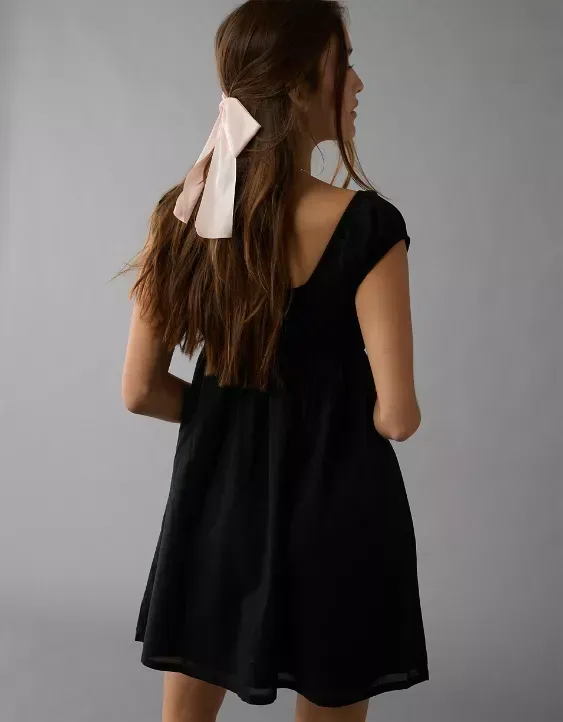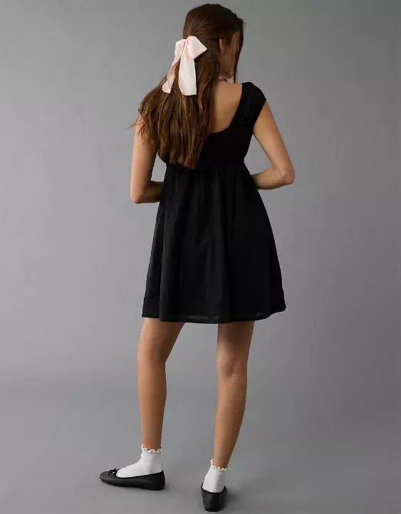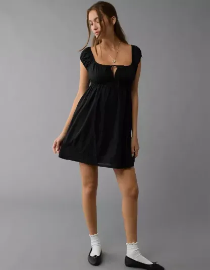 A sweet, coquette-inspired dress with a feminine cap sleeve and a ruched bust.