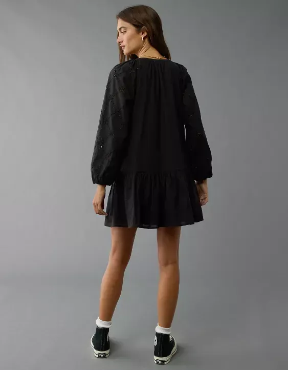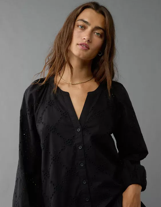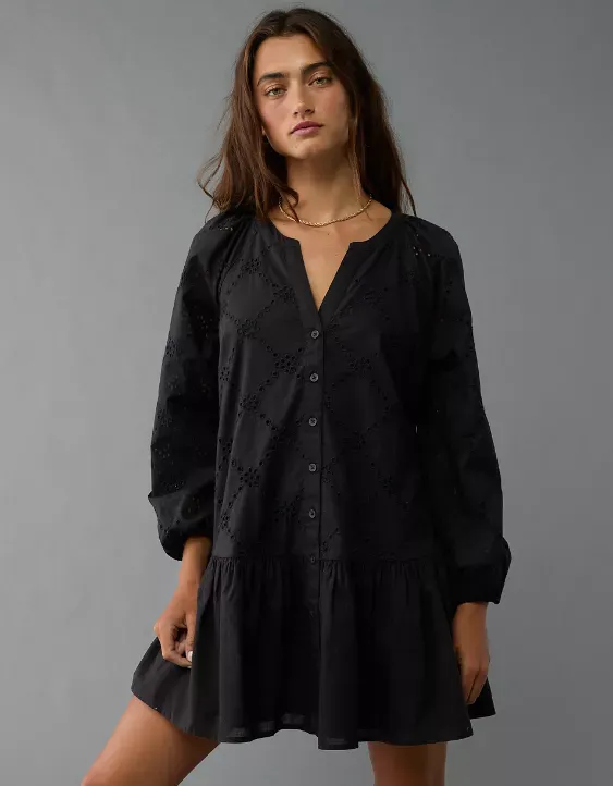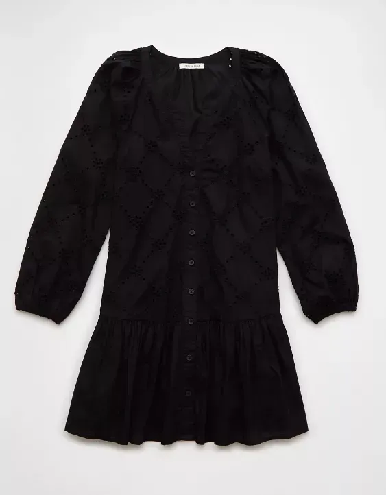 Serve Coastal Granddaughter vibes in this breezy, crisp shirt dress, featuring an on-trend drop waist and long sleeves with just the right amount of puff.