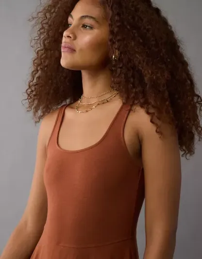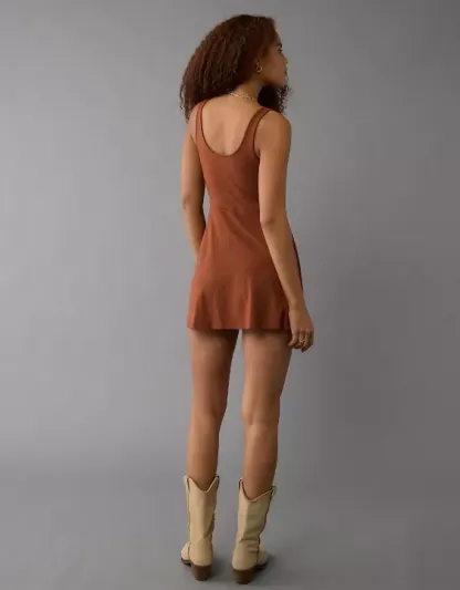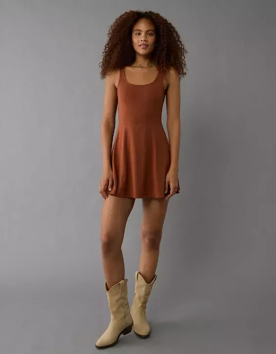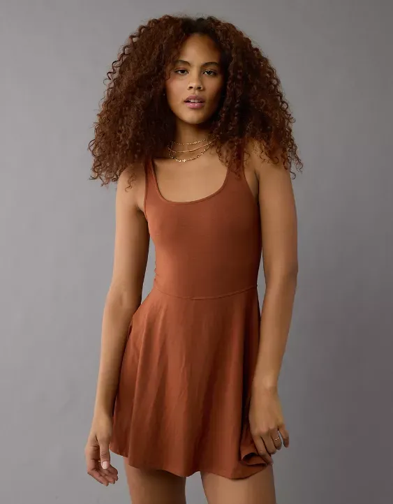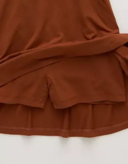 Dare to bare those with this flouncy mini dress, featuring shorts underneath for extra coverage.