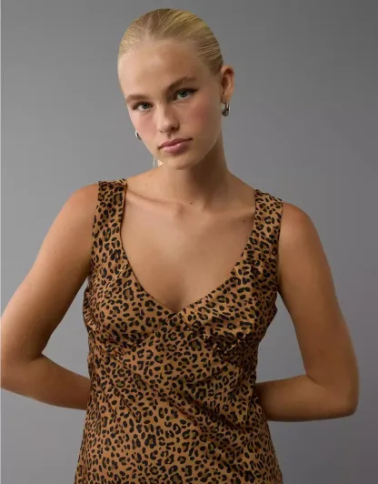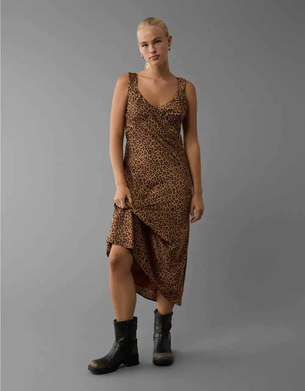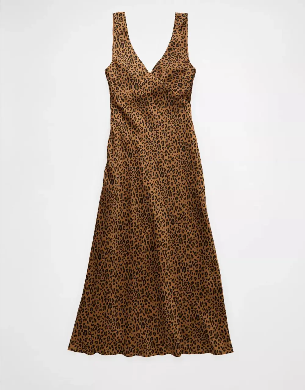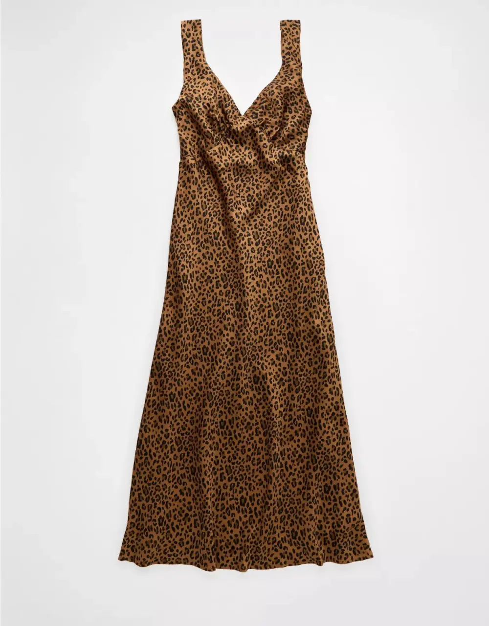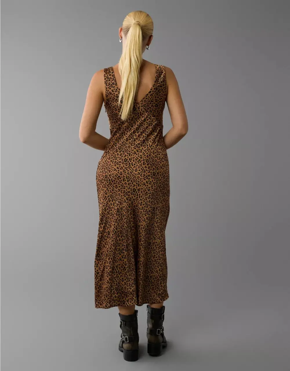 A slinky, satin-like dress that you can dress up or down, featuring on-trend leopard print.
