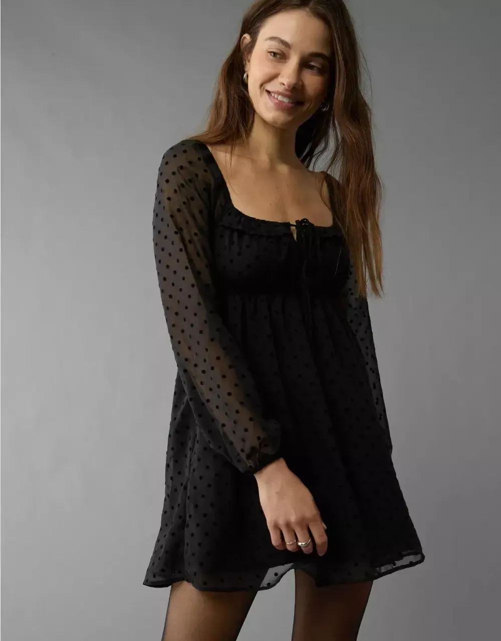 Ae Long-Sleeve Babydoll Mini Dress