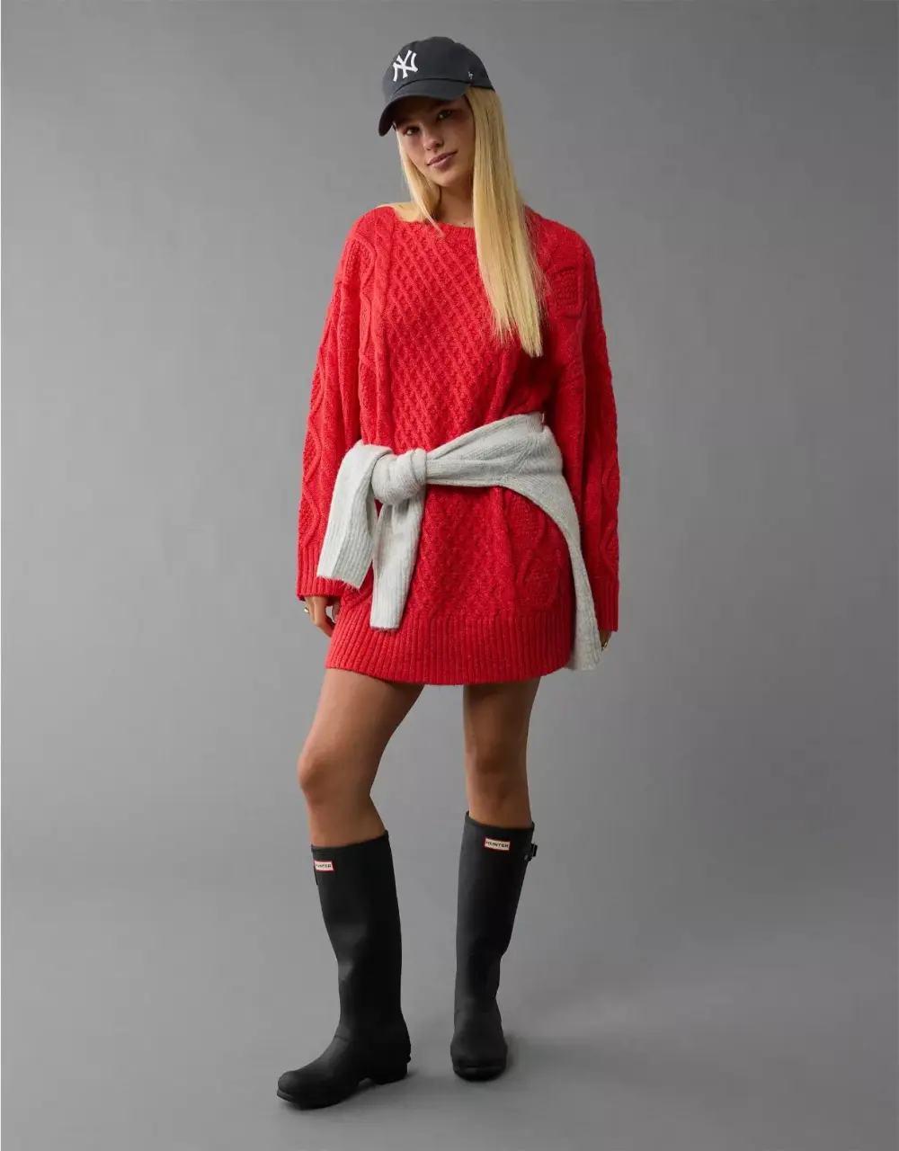 Your favorite cozy sweater in mini dress form, featuring an intricate, holiday-ready cable knit.