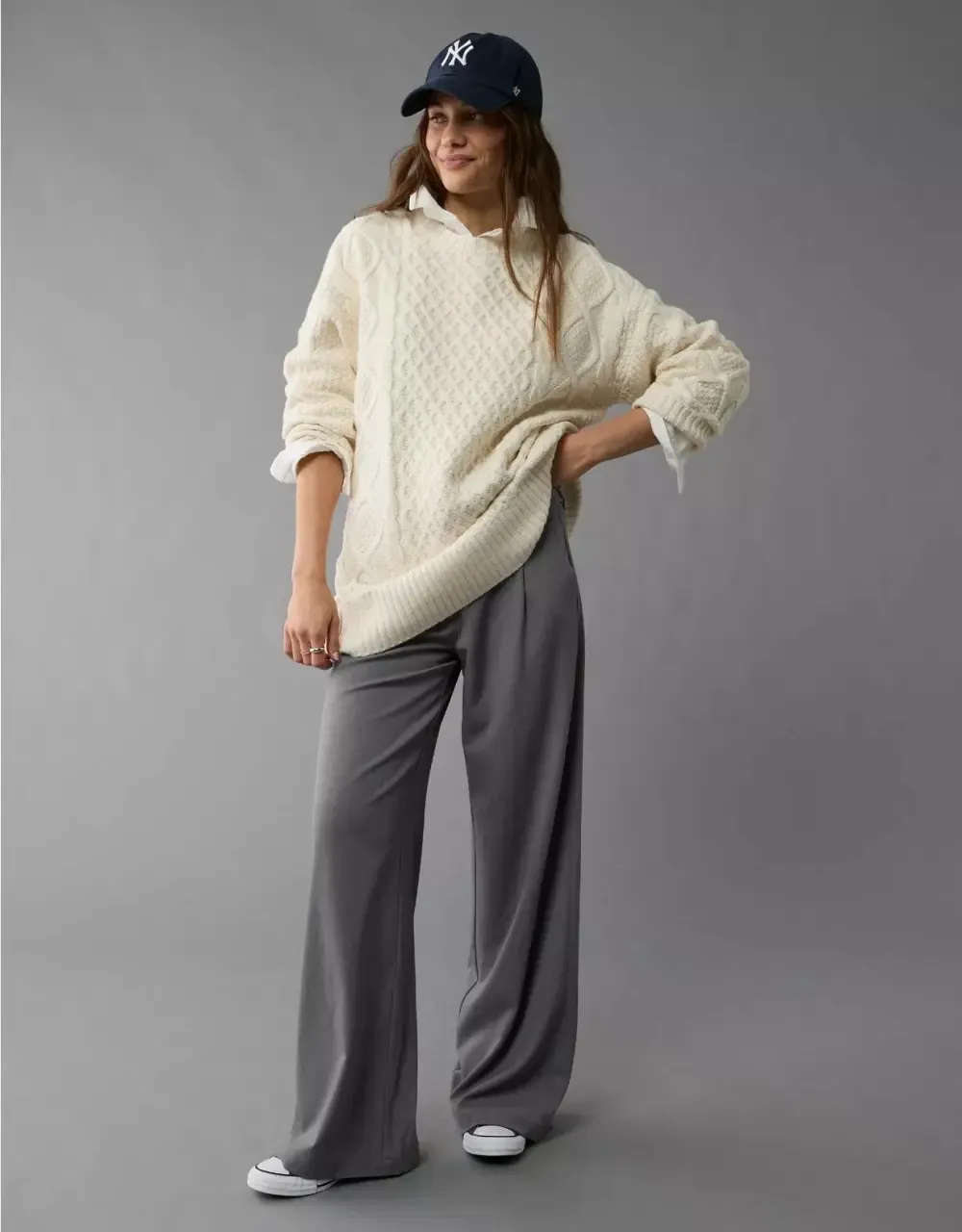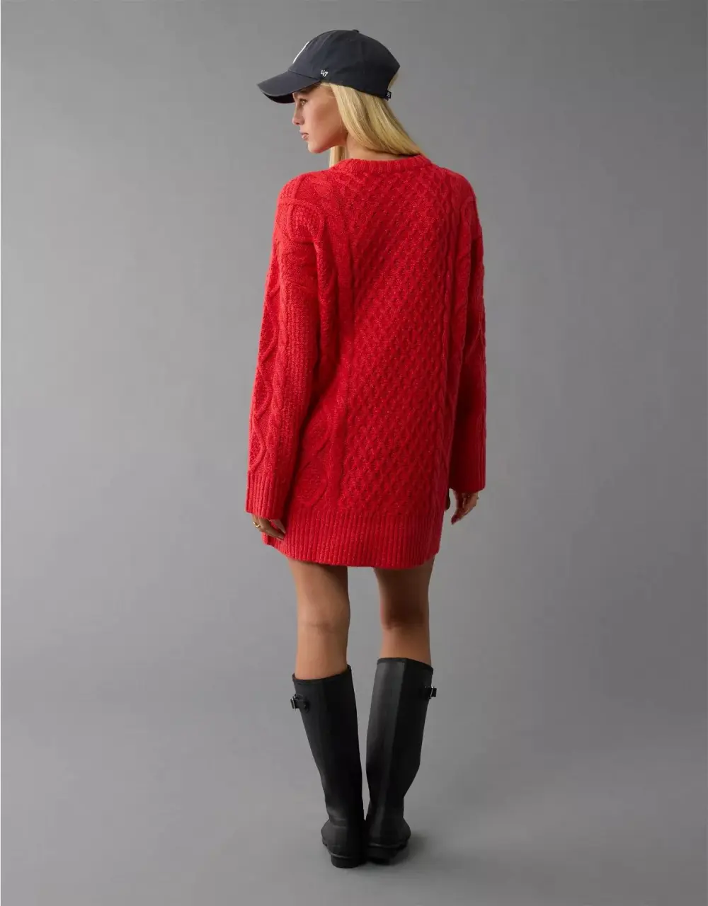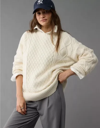 Ae Long-Sleeve Cable Knit Sweater Mini Dress