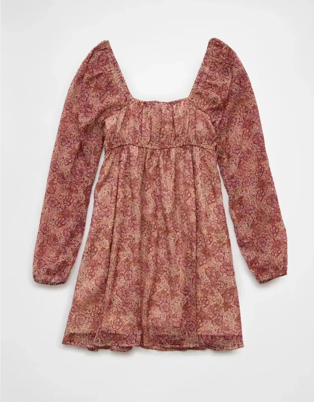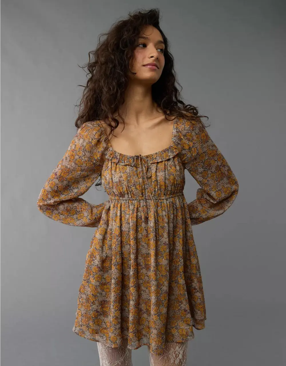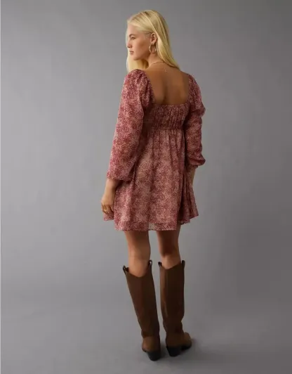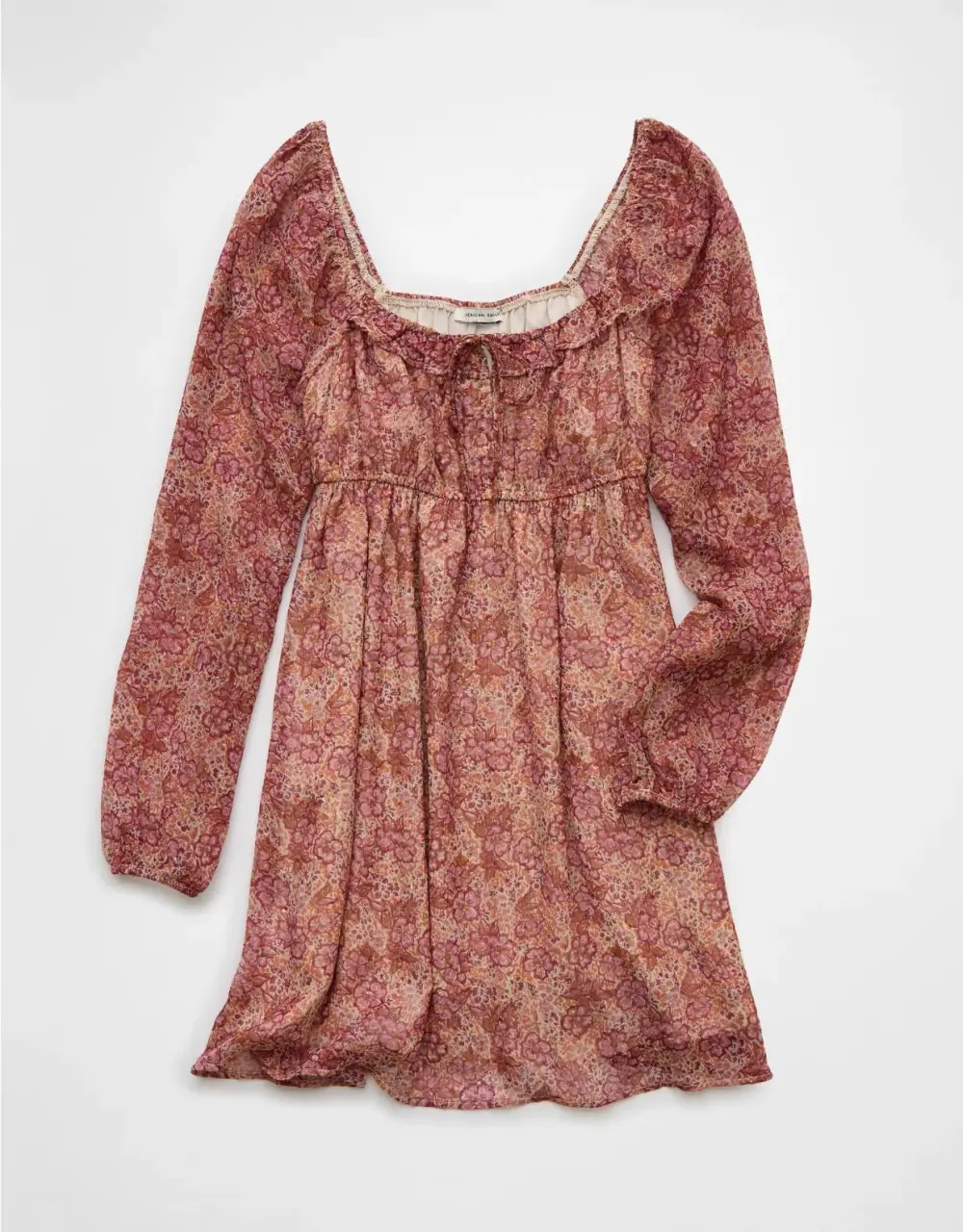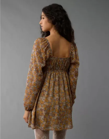 Ae Long-Sleeve Chiffon Babydoll Mini Dress