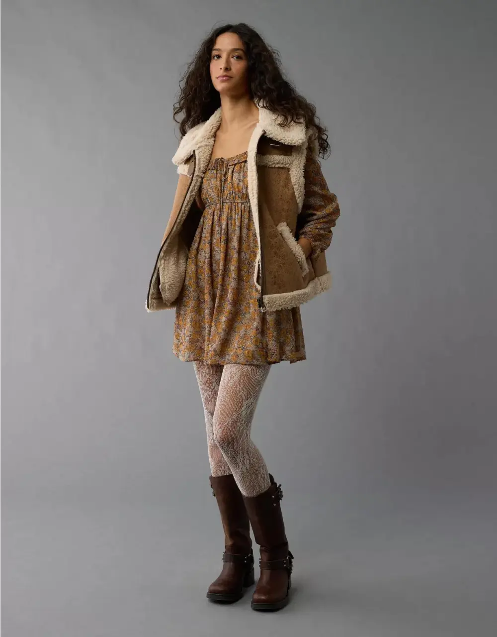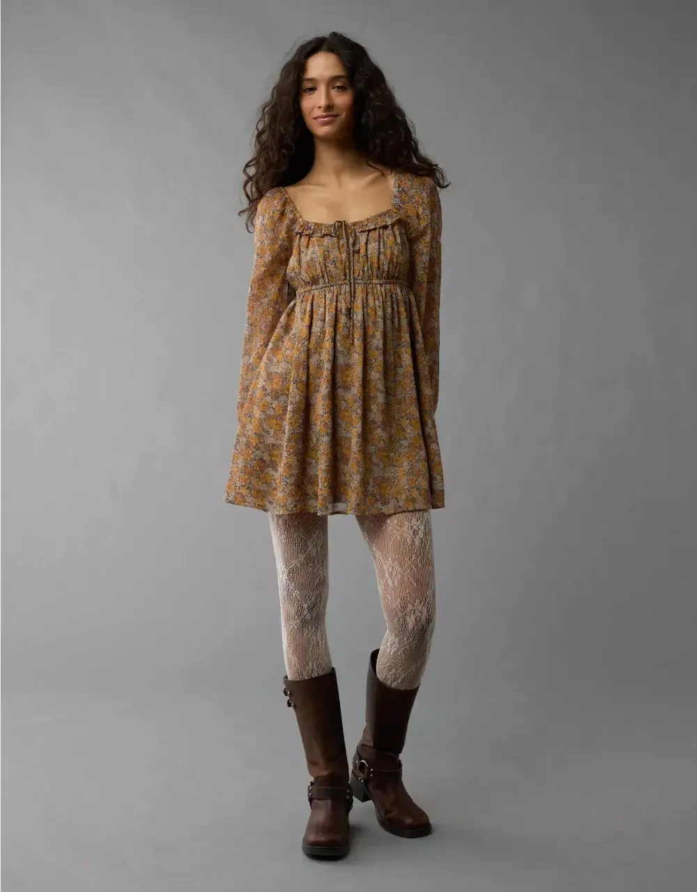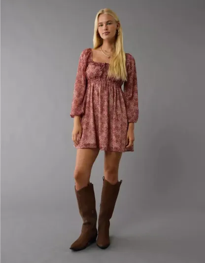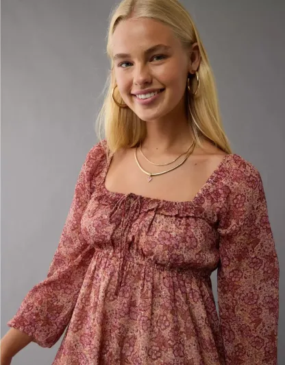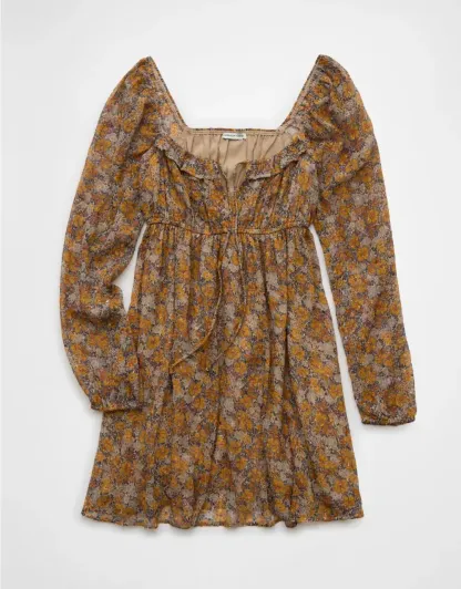 Ae Long-Sleeve Chiffon Babydoll Mini Dress