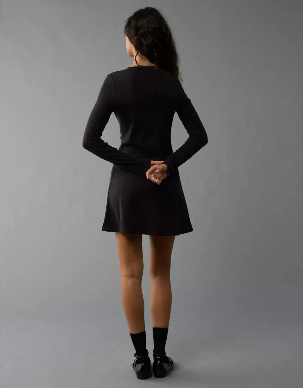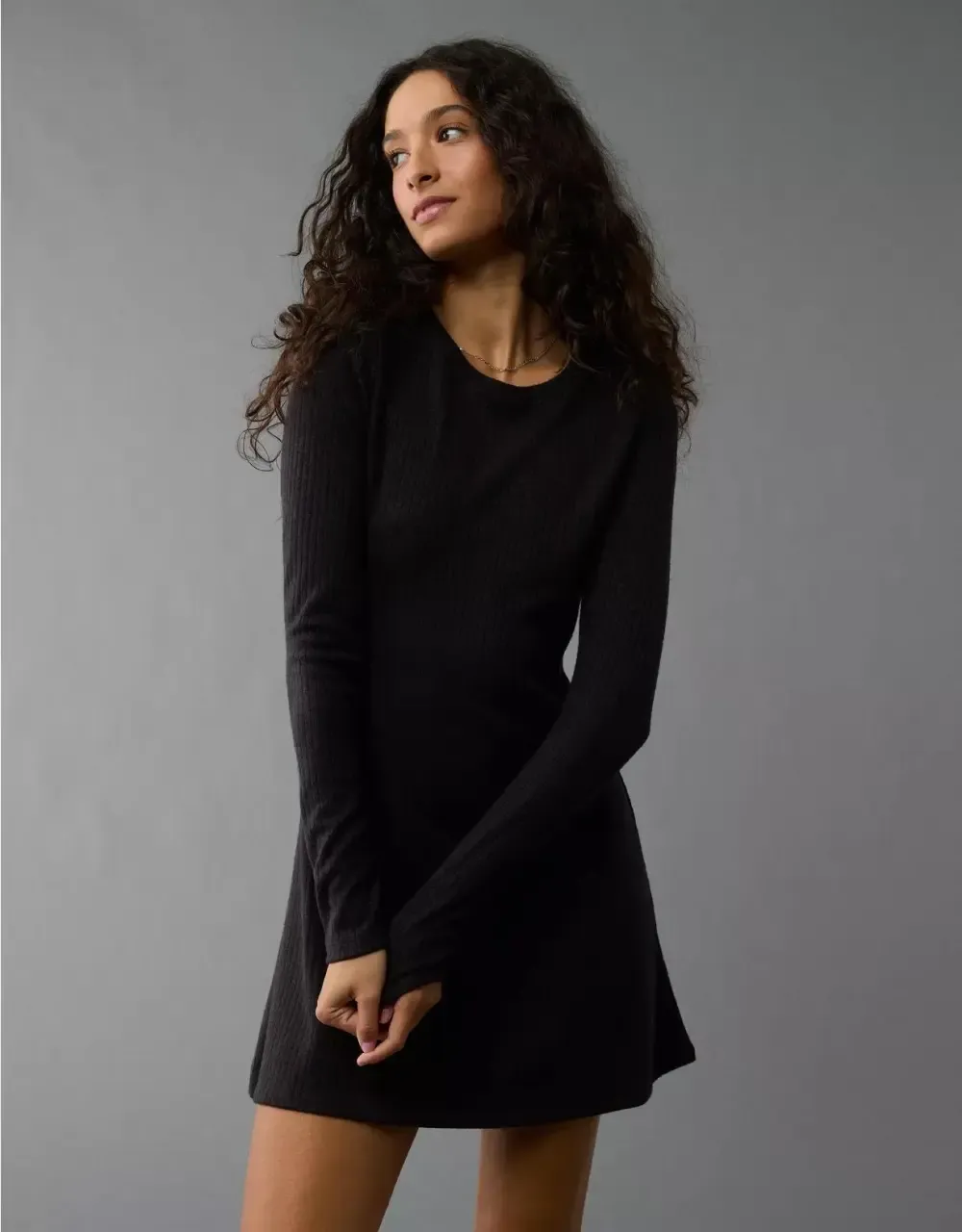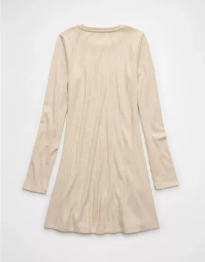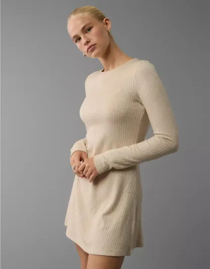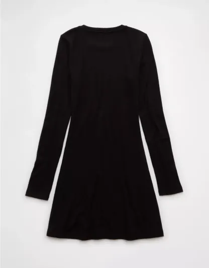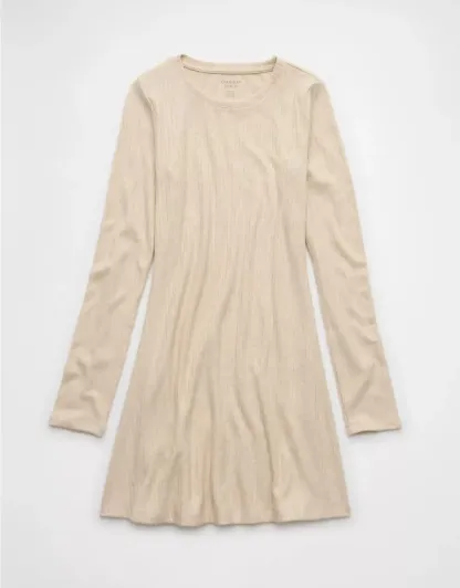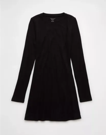 Ae Long-Sleeve Ribbed Fit & Flare Mini Dress