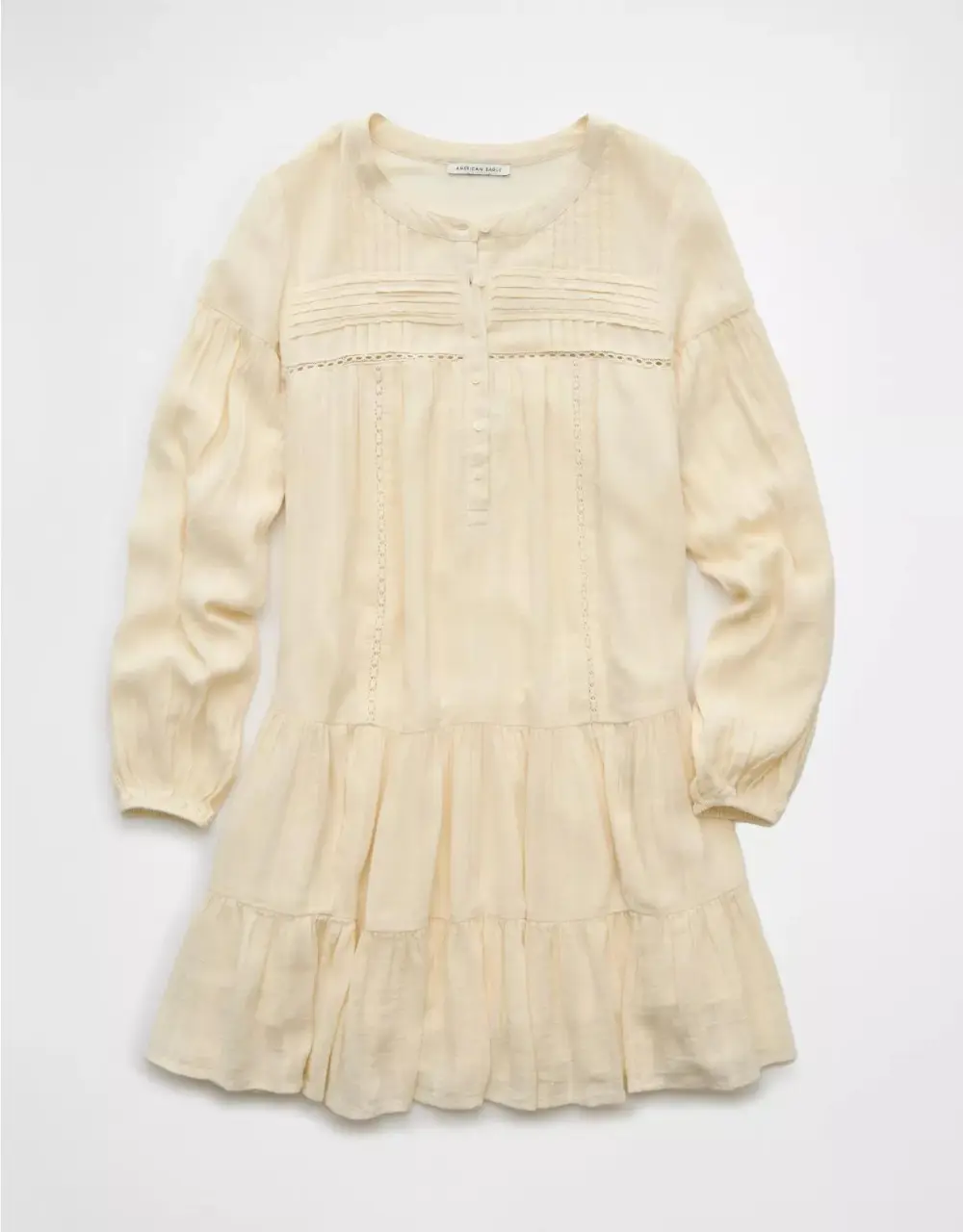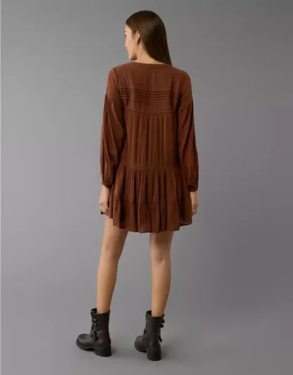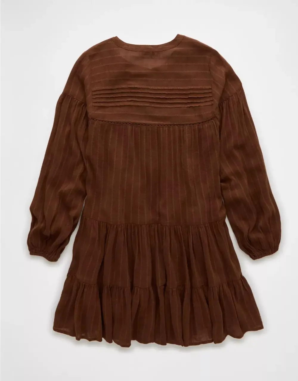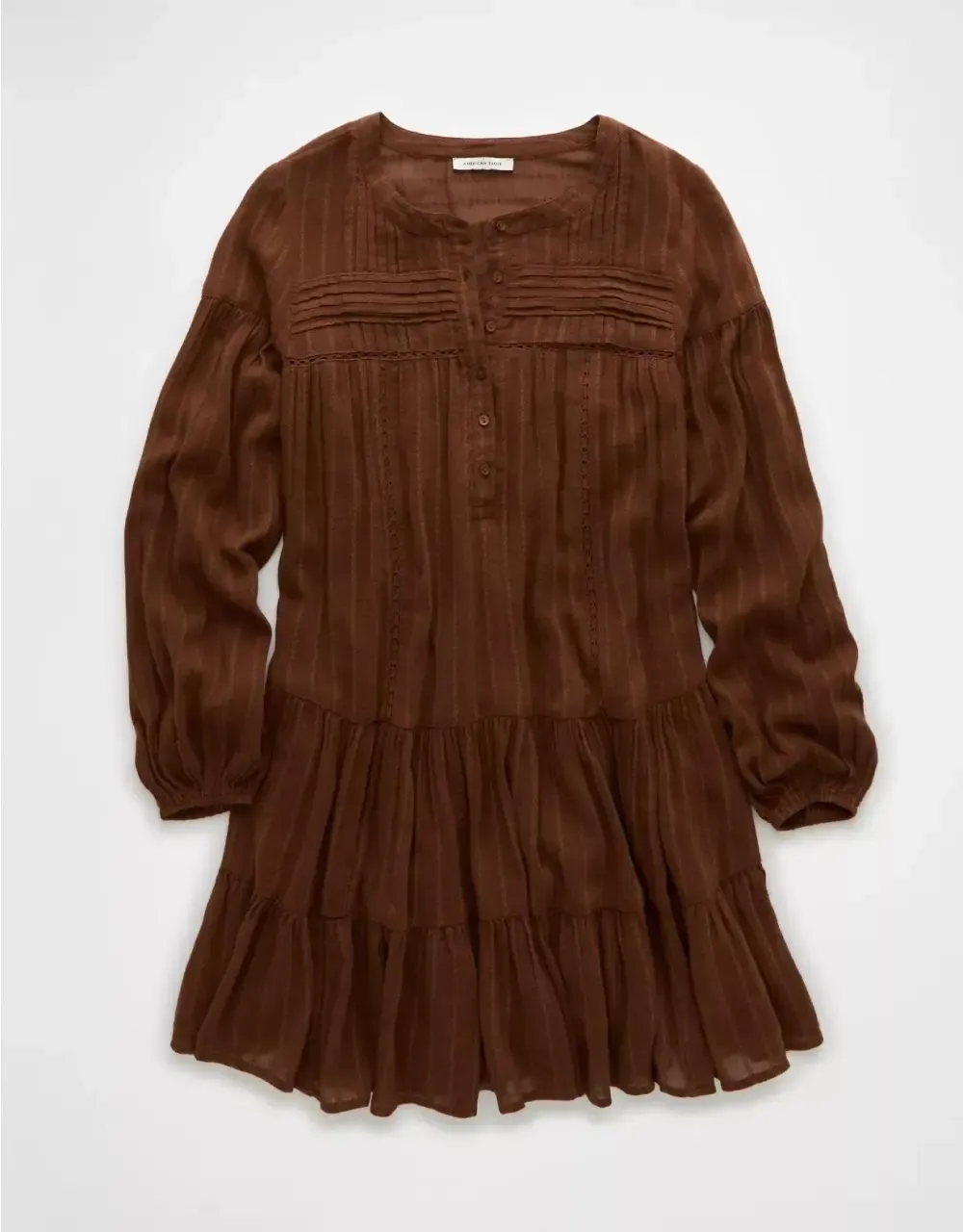 Ae Long-Sleeve Tiered Flowy Shirt Dress