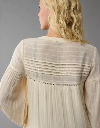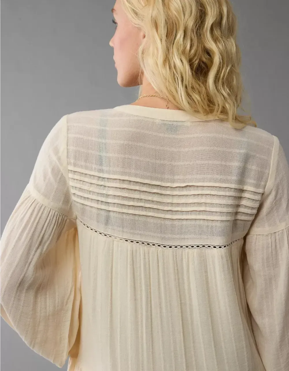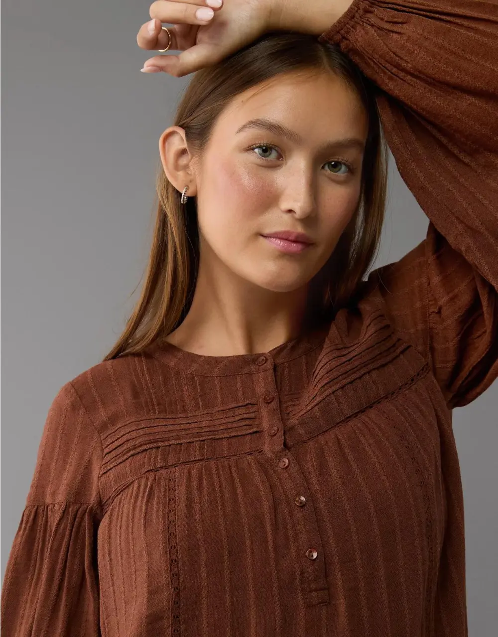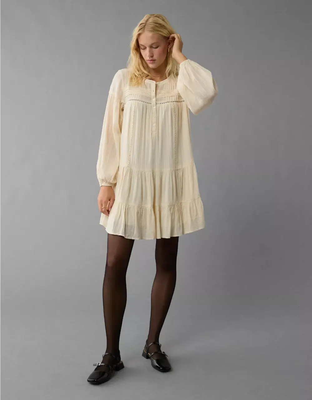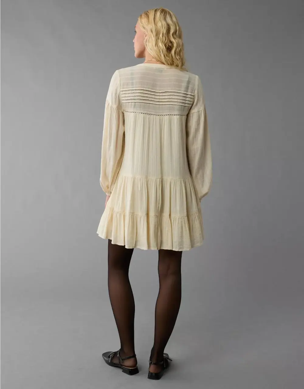 Ae Long-Sleeve Tiered Flowy Shirt Dress