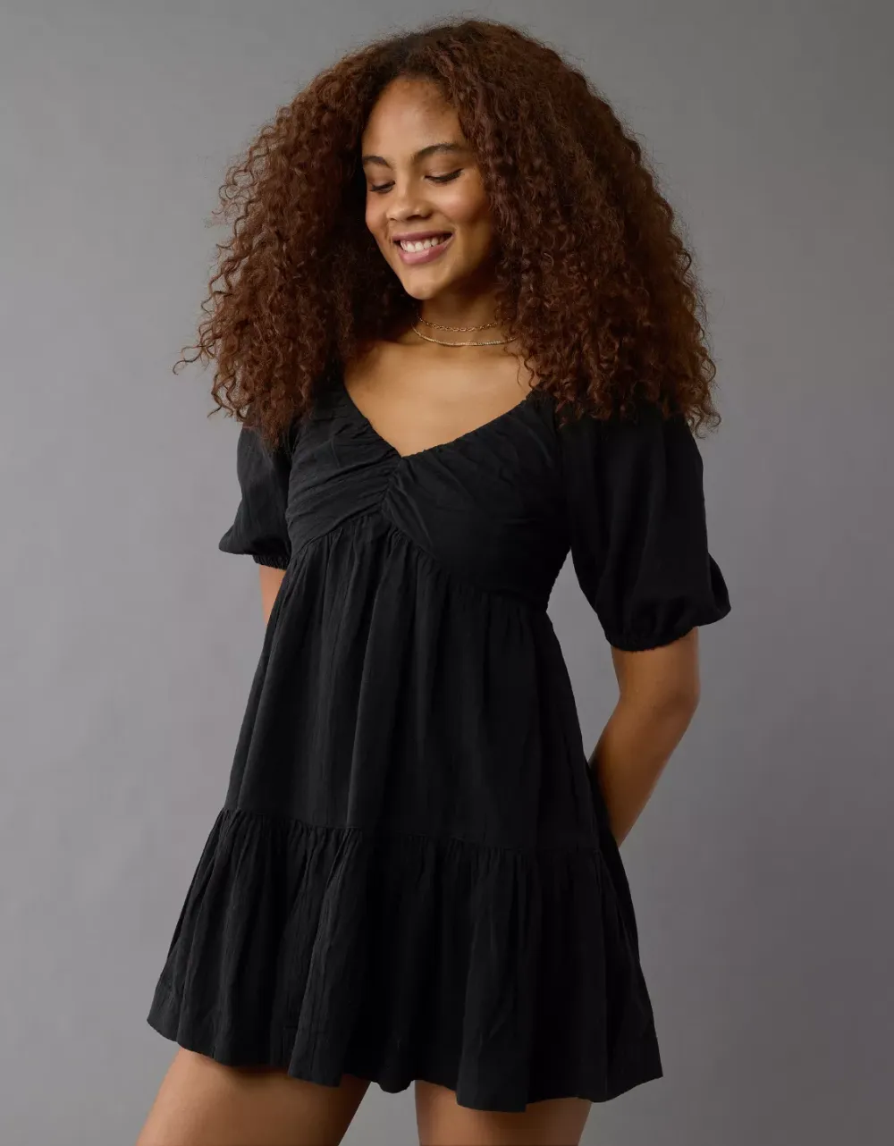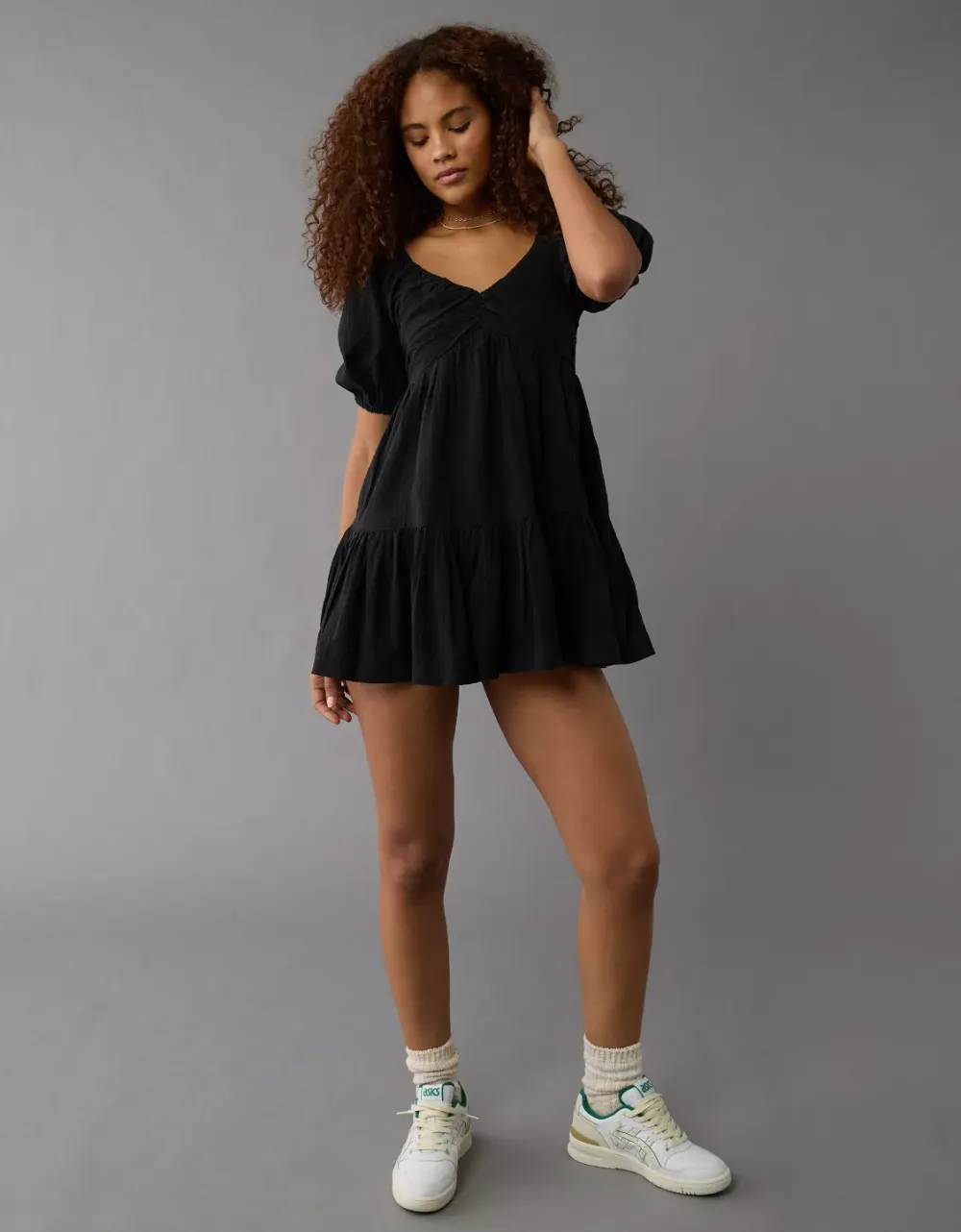 Bold style meets cottagecore with this mini dress, featuring a puff sleeve, a deep v-neck and a mini skirt that moves with you.