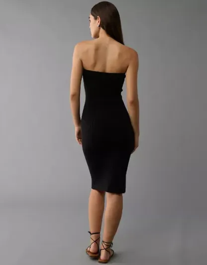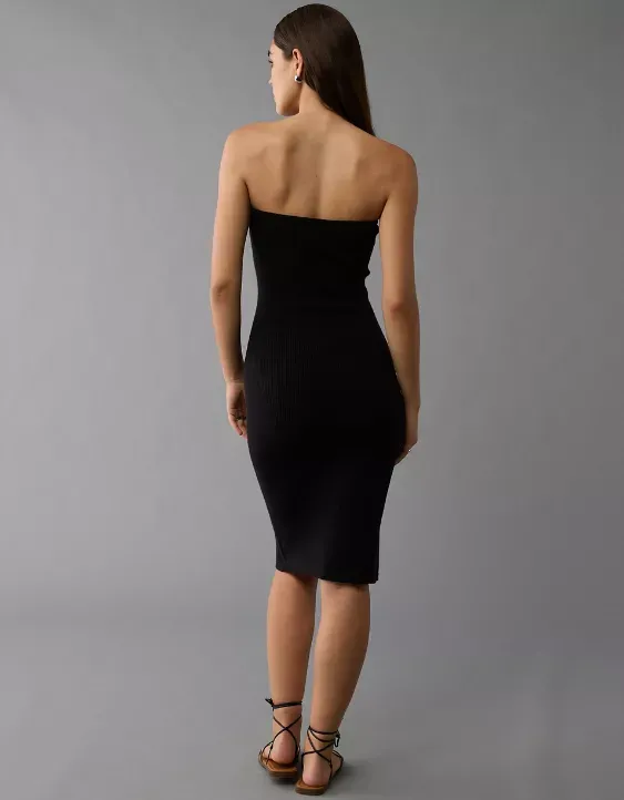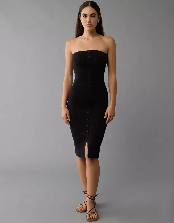 A slinky, sexy midi dress made from a super soft sweater knit, perfect for going out or layering for a chic daytime look.