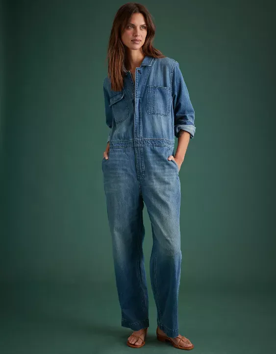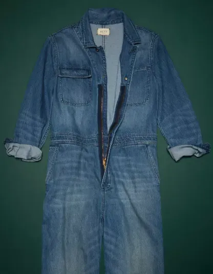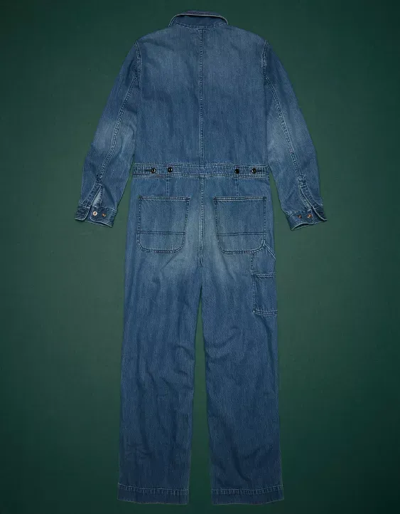 - Vintage inspired 1940s boiler suit cut in a drapey 2x1 indigo twill