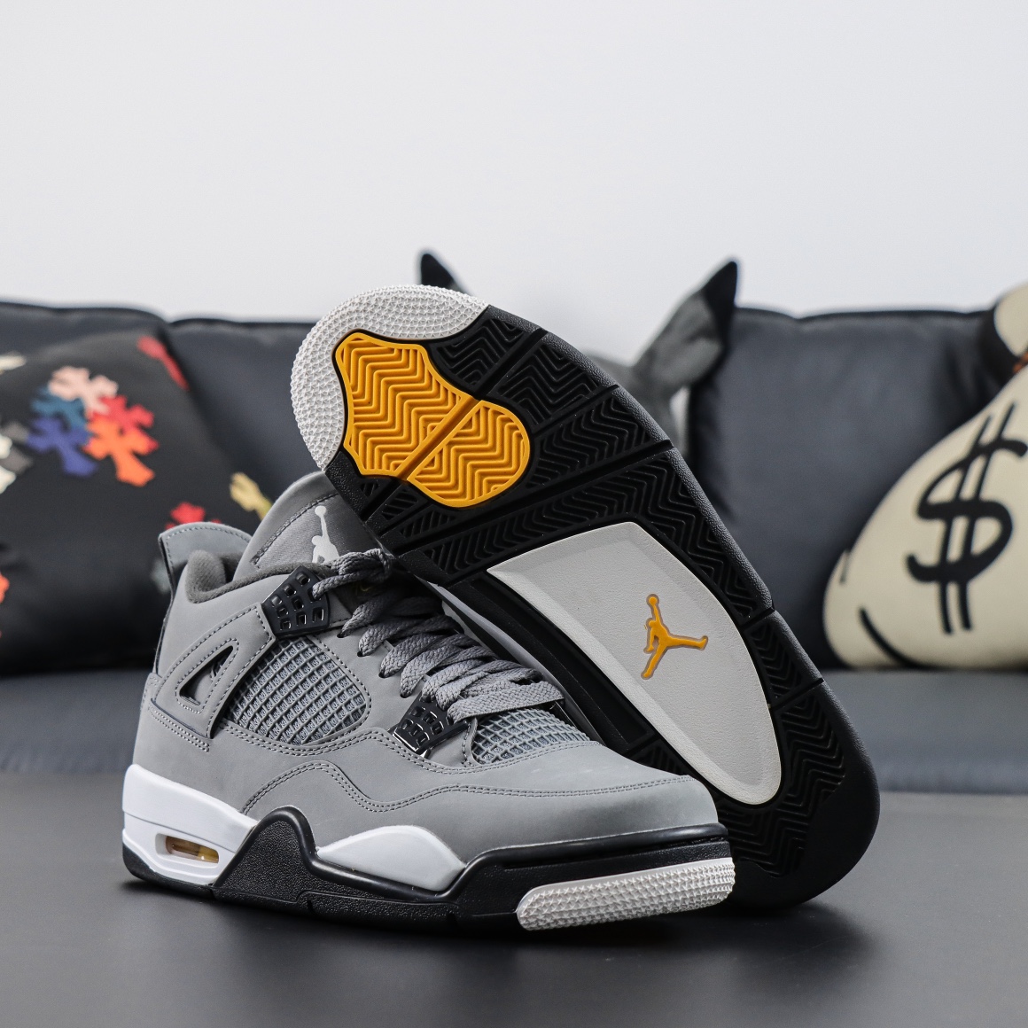 The Jordan 4 Cool Grey Reps is a timeless sneaker that blends versatility with classic Air Jordan heritage. First released in 2004 and reissued in 2019, this colorway remains one of the most sought-after designs in the Air Jordan 4 lineup. The upper features premium Cool Grey nubuck, delivering a sleek and sophisticated look. Subtle black and white accents on the midsole, lace cage, and tongue complement the neutral tones, while the Chrome Jumpman logo on the heel adds a premium touch. The combination of these elements creates a refined yet bold aesthetic suitable for any occasion.
