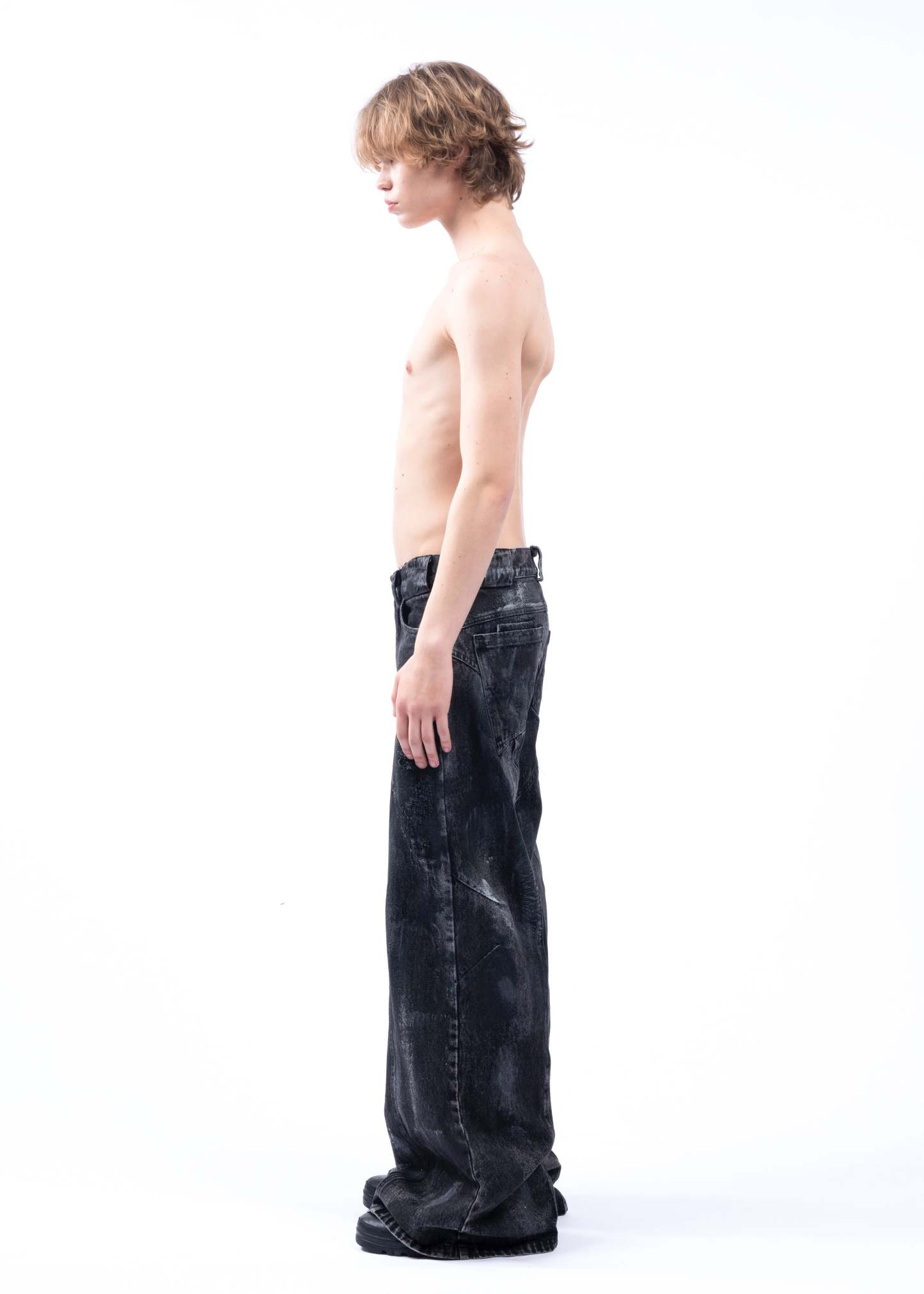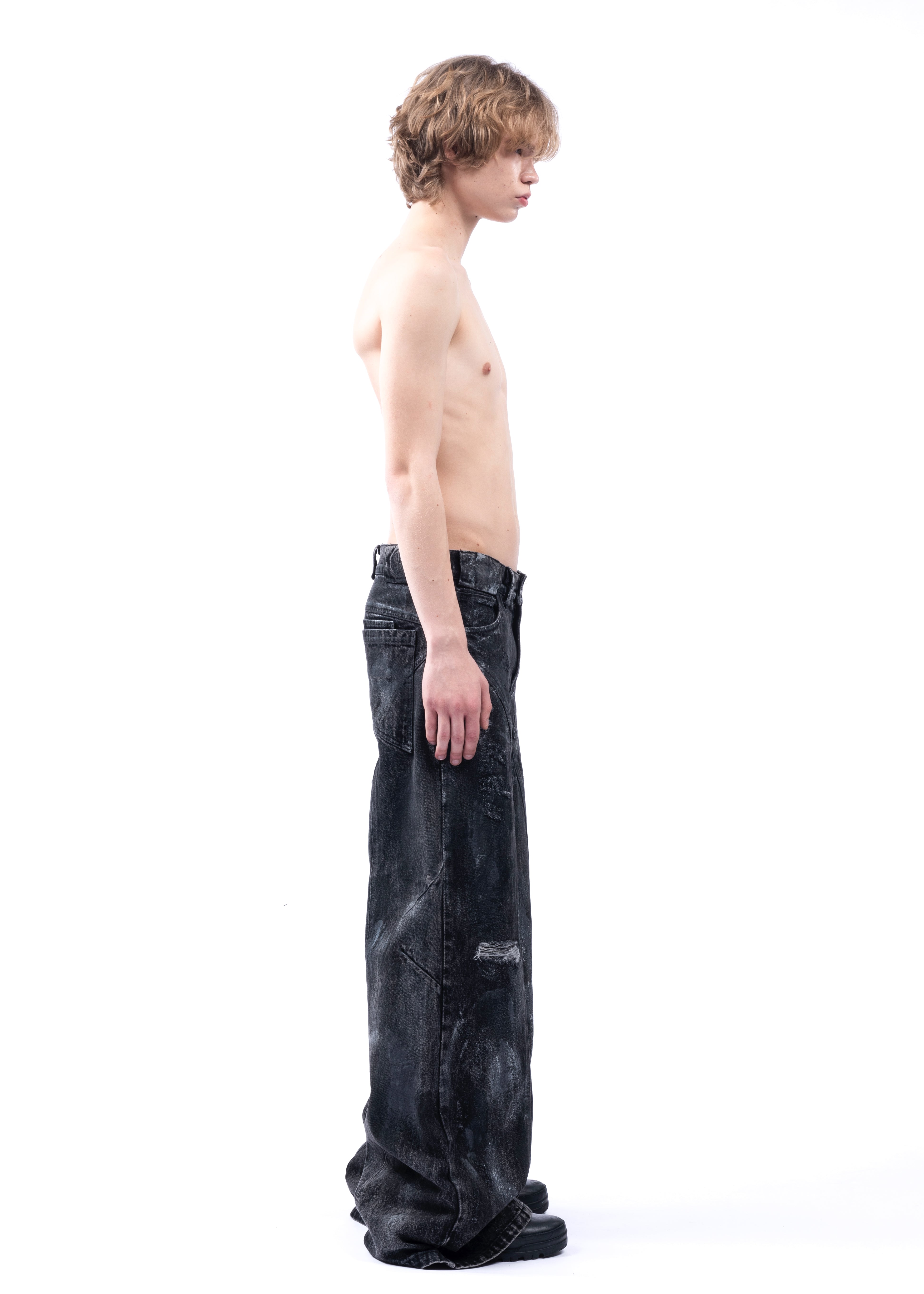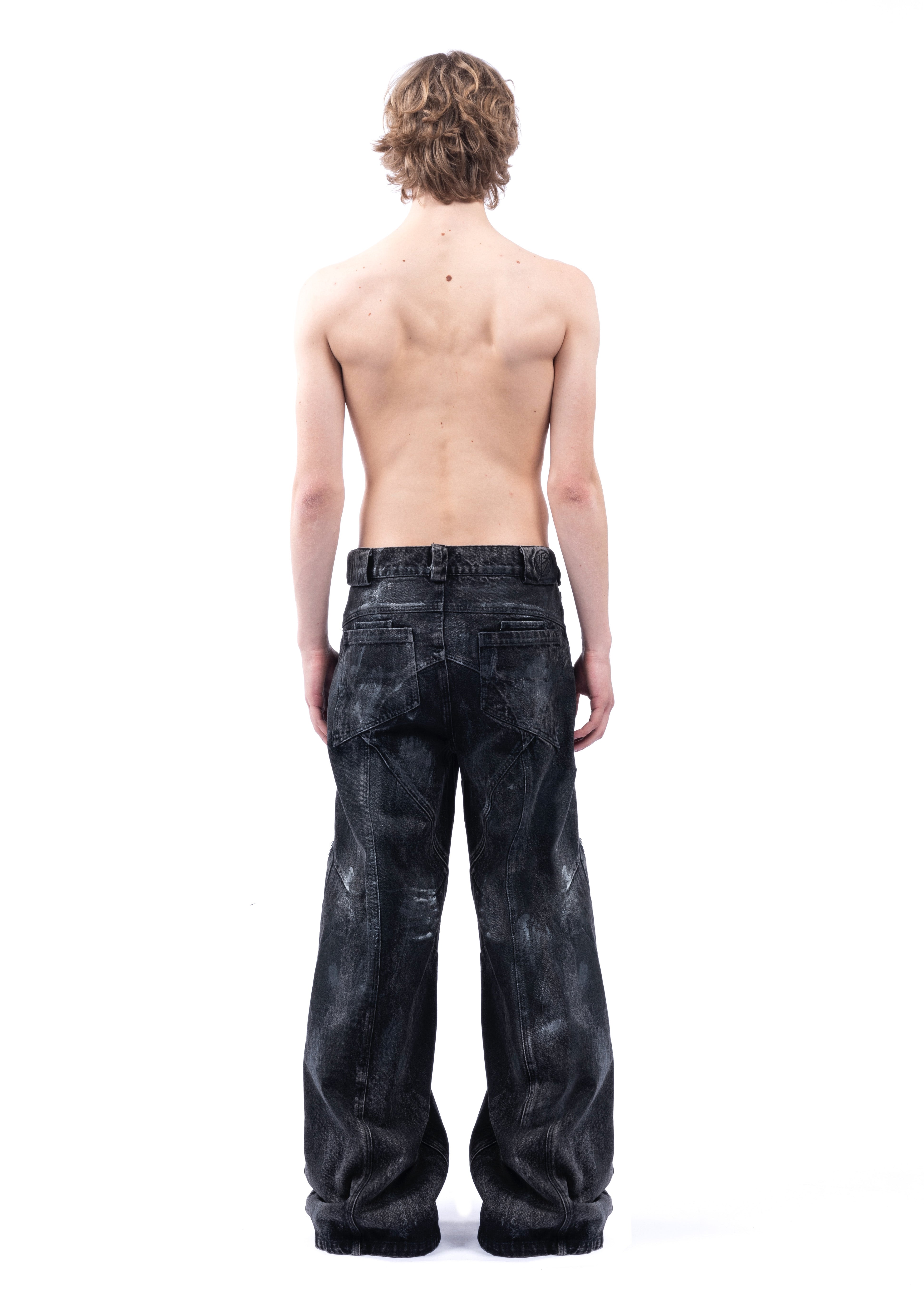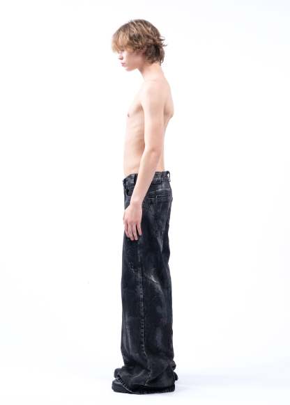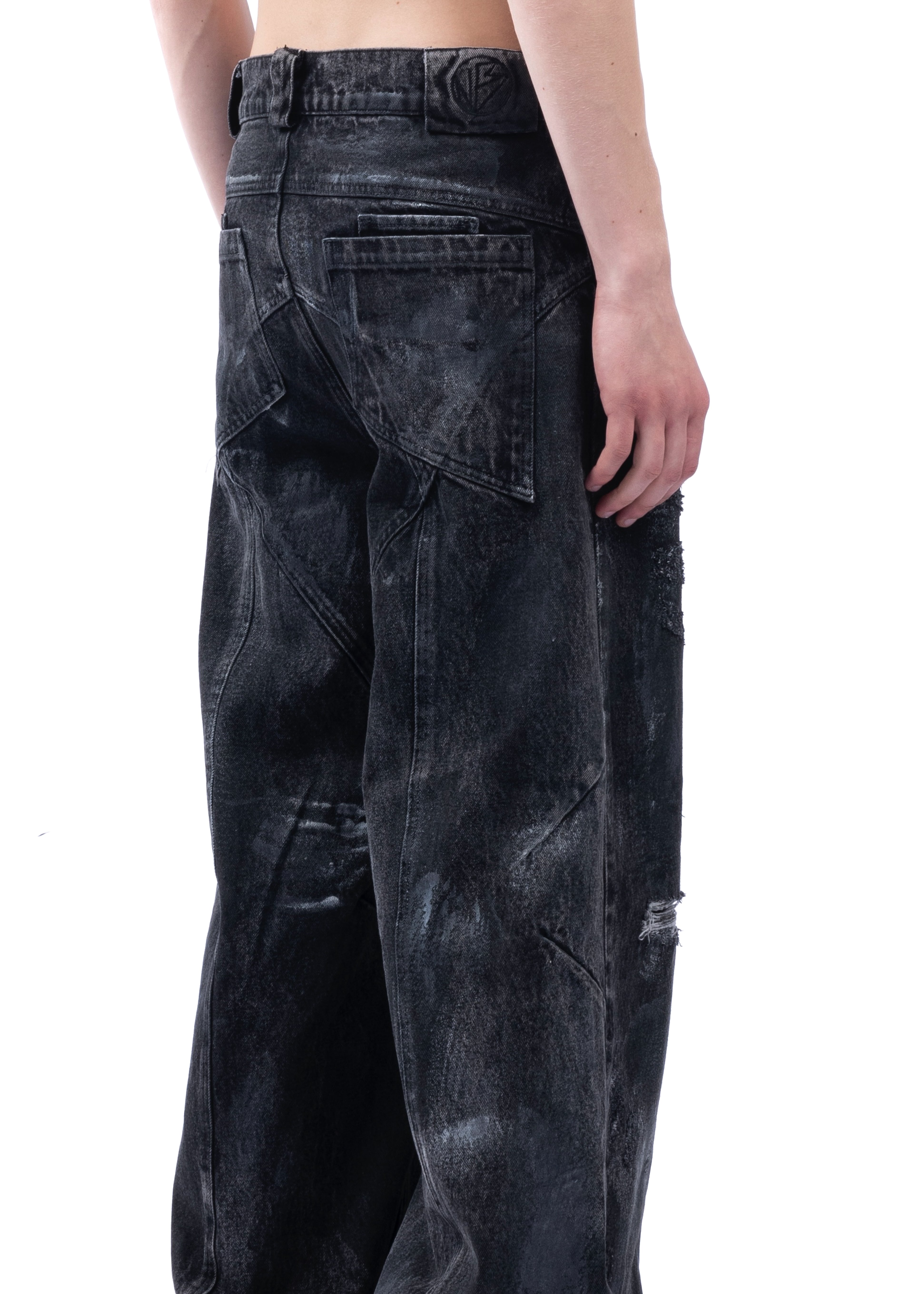 THE BLACK ARTISANAL DUNE DENIM FEATURES A BAGGY, LOOSE FIT WITH A NATURAL STACKED SILHOUETTE. EVERY PAIR IS HAND-FINISHED, GIVING IT A UNIQUE, ARTISANAL CHARACTER — NO TWO ARE EXACTLY ALIKE. DISTRESSING IS DONE BY HAND AND MAY VARY FROM PIECE TO PIECE. DESIGNED AS A UNISEX GARMENT, IT INCLUDES REFINED DETAILS SUCH AS NFS LOGO EMBROIDERY.