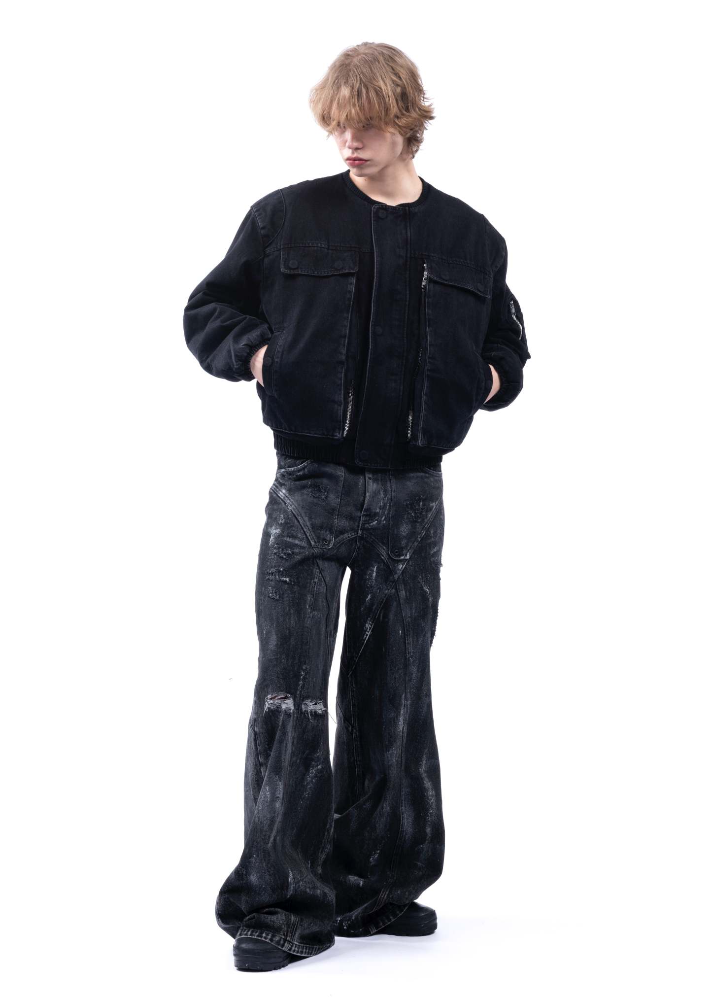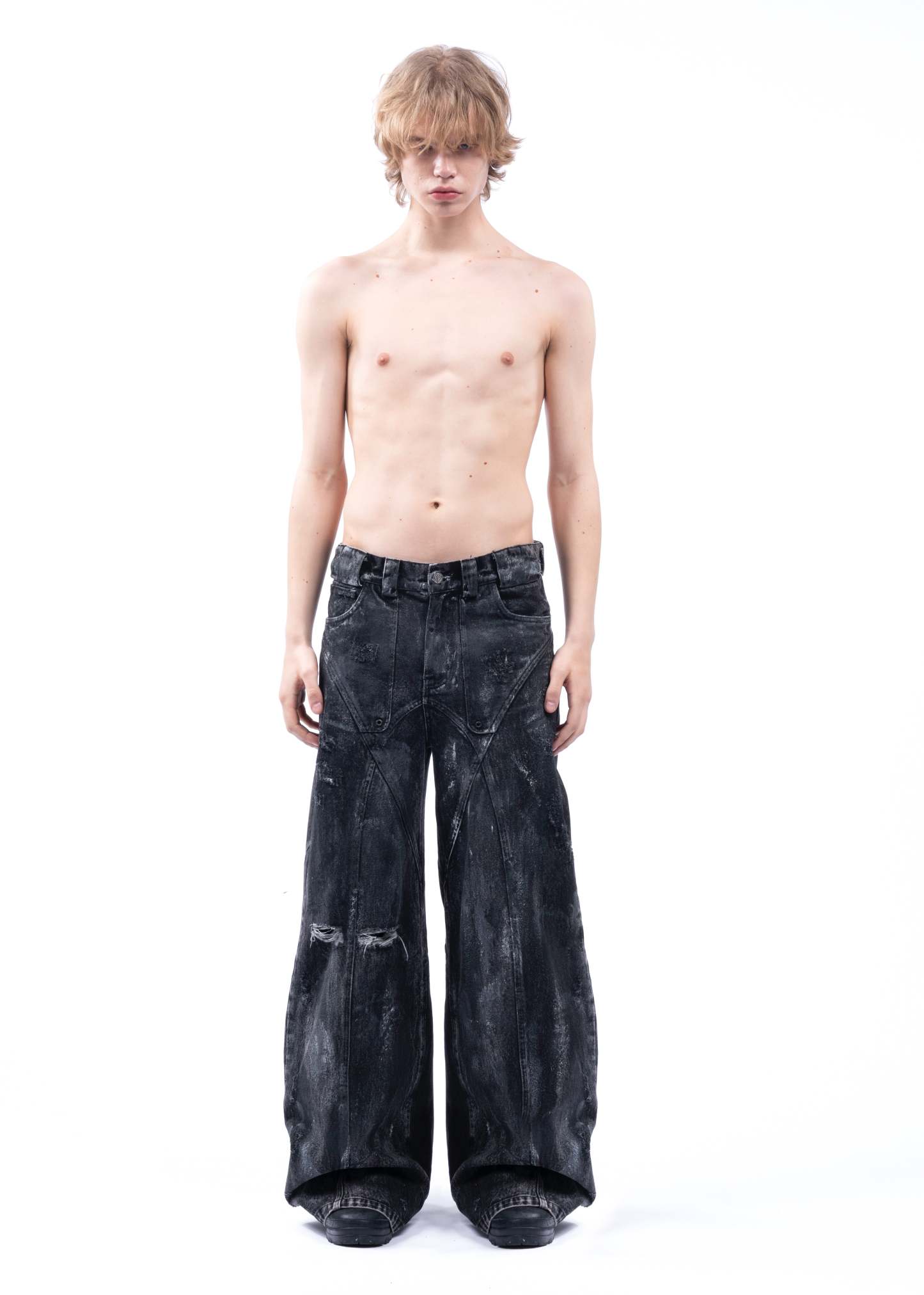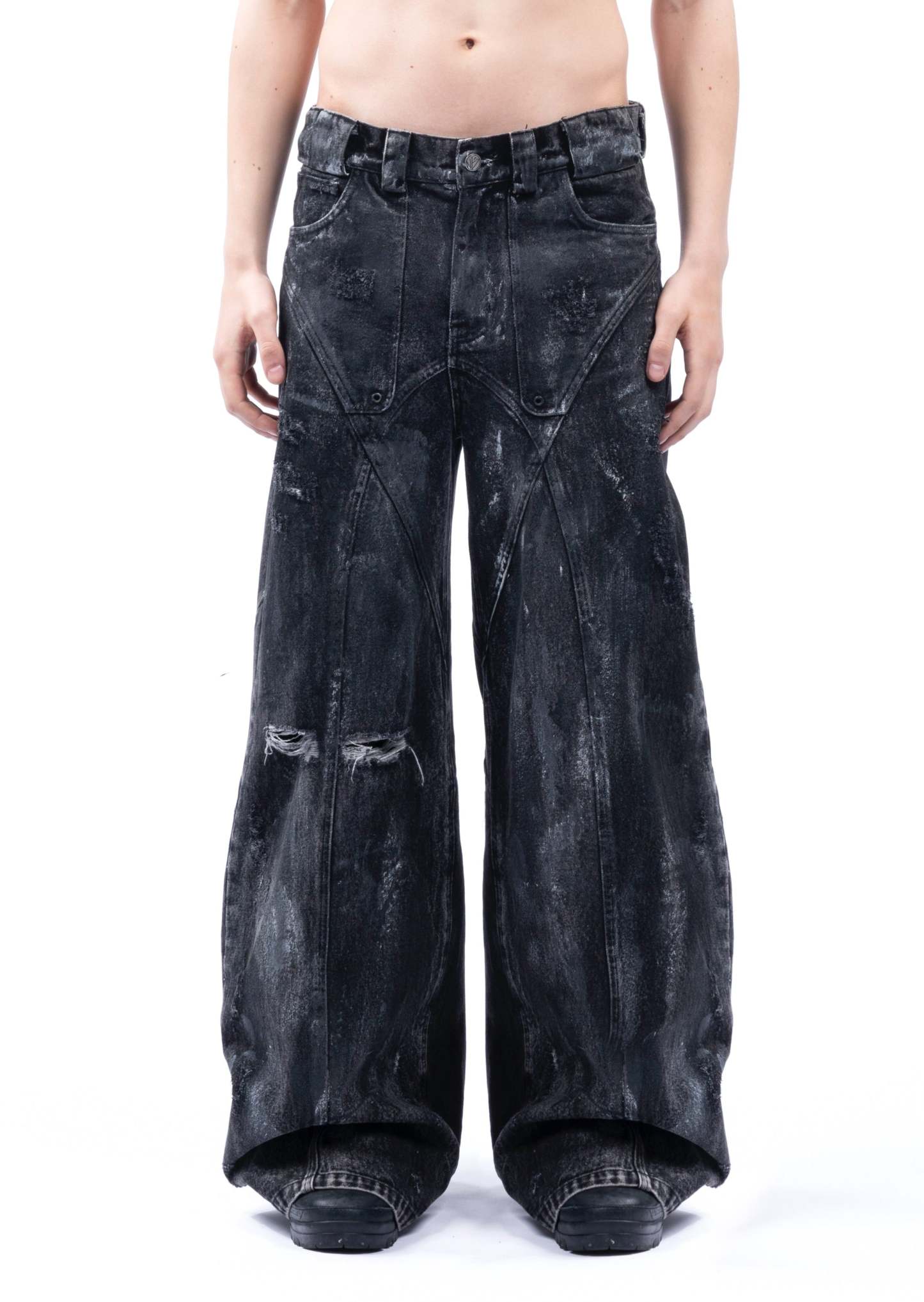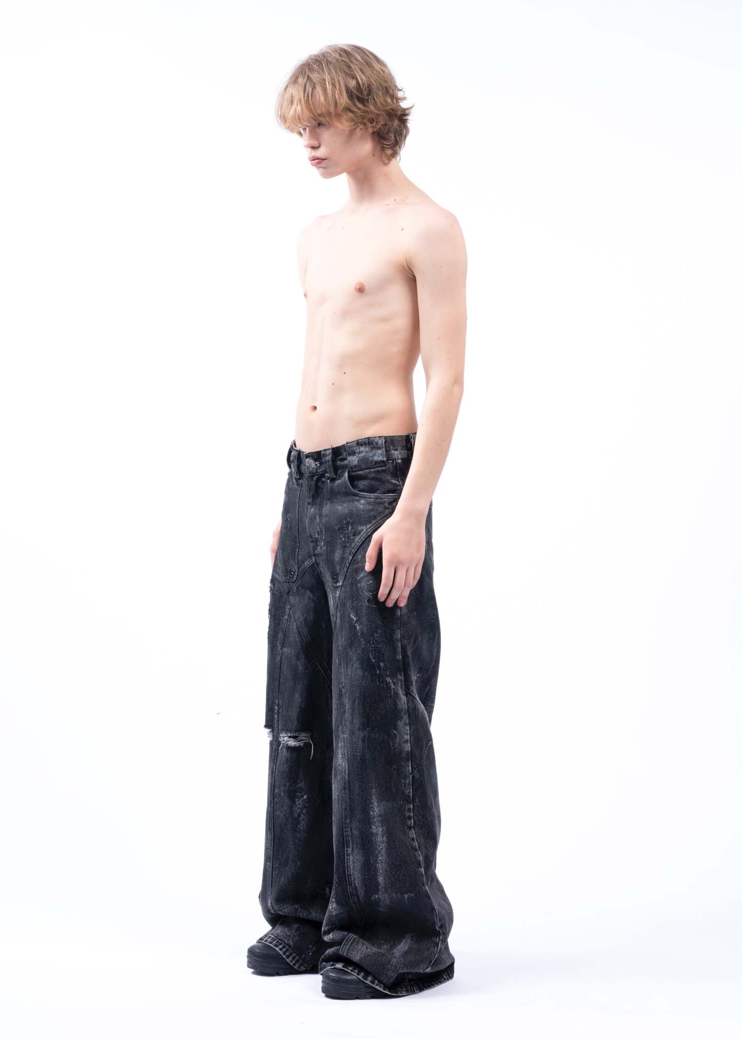 THE BLACK ARTISANAL DUNE DENIM FEATURES A BAGGY, LOOSE FIT WITH A NATURAL STACKED SILHOUETTE. EVERY PAIR IS HAND-FINISHED, GIVING IT A UNIQUE, ARTISANAL CHARACTER — NO TWO ARE EXACTLY ALIKE. DISTRESSING IS DONE BY HAND AND MAY VARY FROM PIECE TO PIECE. DESIGNED AS A UNISEX GARMENT, IT INCLUDES REFINED DETAILS SUCH AS NFS LOGO EMBROIDERY.