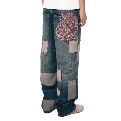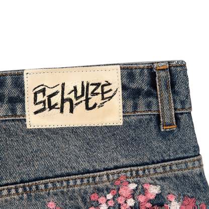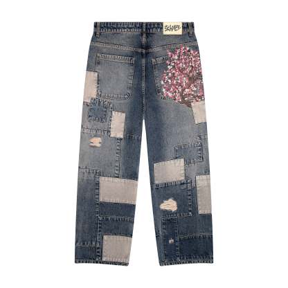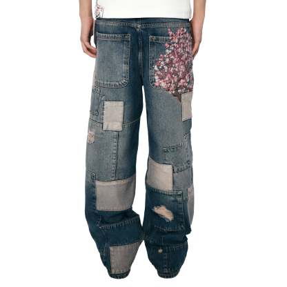 14,5oz denim / 100% cotton / 20+ hand sewn patches all over / embroidery on front pocket and back / embroidered leather patch / washed effect / distressed patches / wash inside out / fits true to size