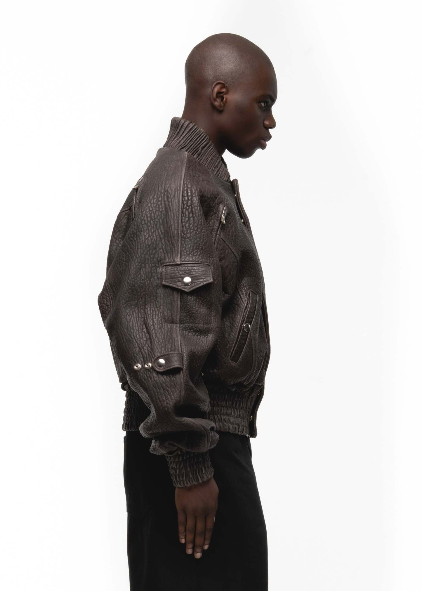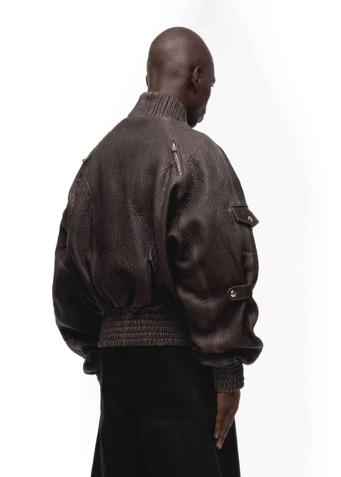 BROWN DRIED CONCRETE LEATHER BOMBER