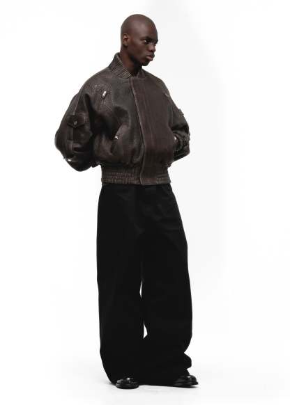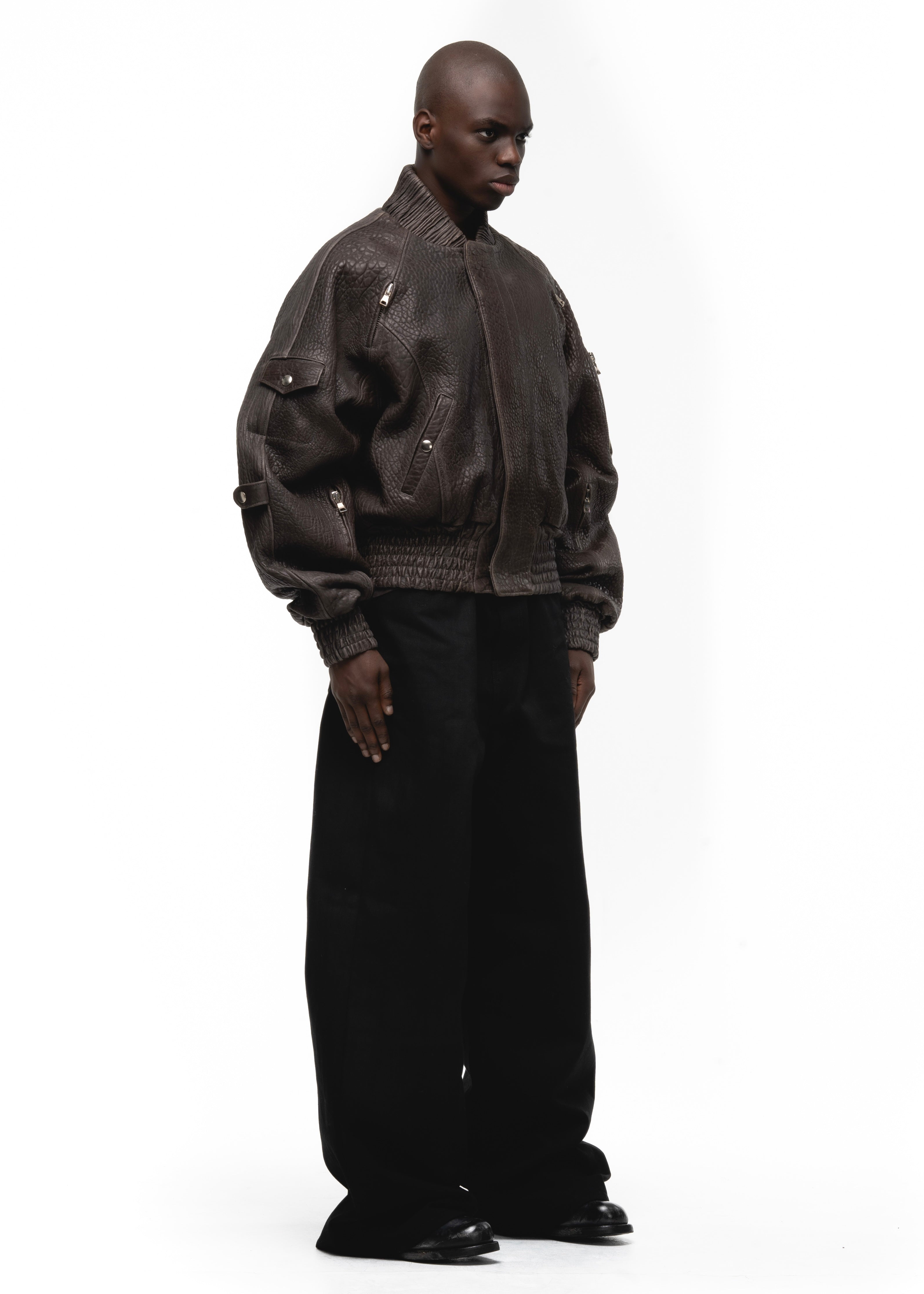 THE CONCRETE BOMBER JACKET, CRAFTED FROM PREMIUM COW LEATHER IN THE SOUTH OF ITALY, OFFERS UNMATCHED QUALITY AND STYLE. DESIGNED WITH A PERFECTLY TAILORED SHAPE, IT EXUDES TIMELESS ELEGANCE AND DURABILITY. A MODERN CLASSIC BUILT TO LAST.