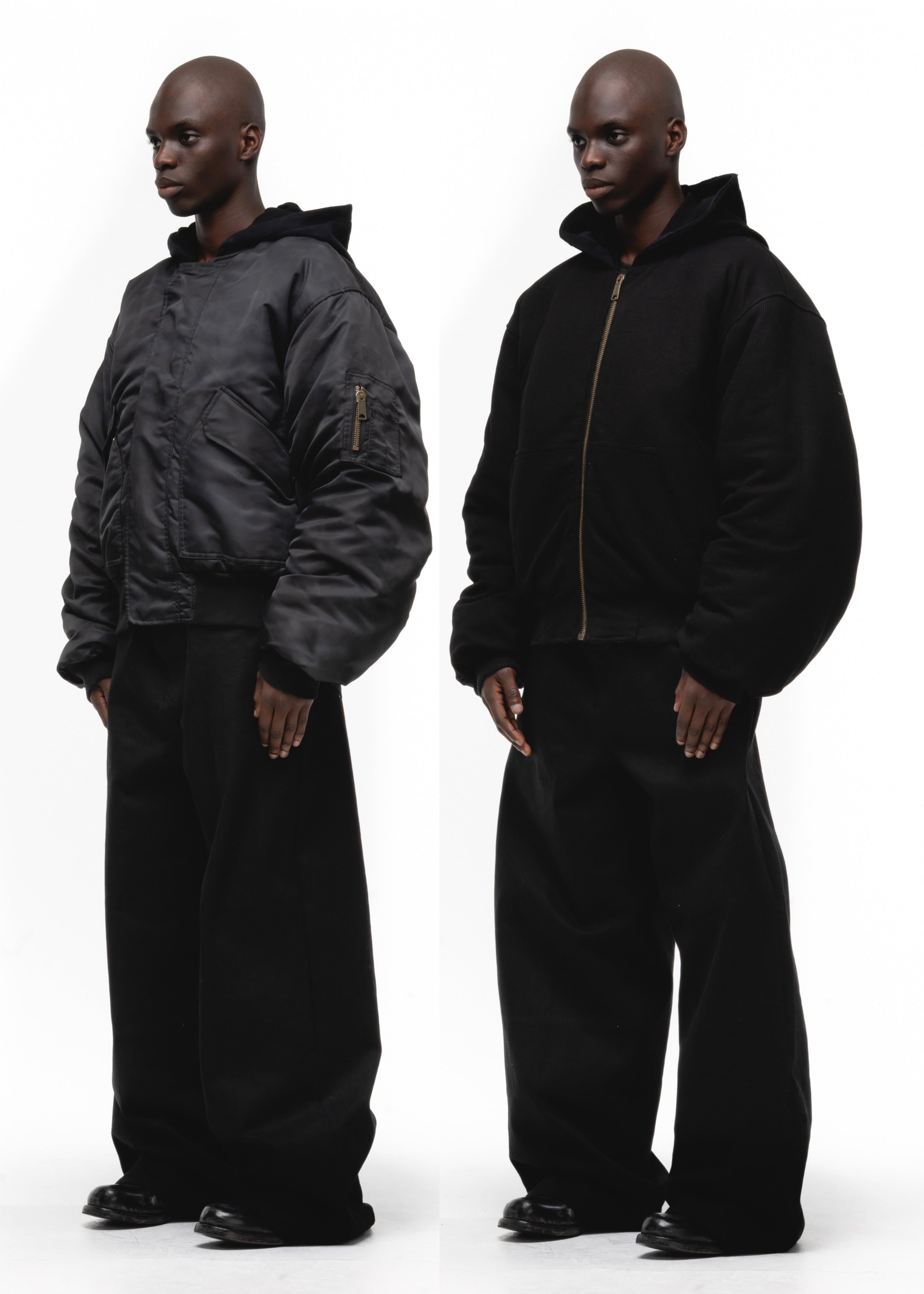 THE REVERSIBLE BOMBER JACKET IS A VERSATILE, REVERSIBLE SIGNATURE PIECE DESIGNED FOR BOTH STYLE AND PRACTICALITY. CRAFTED FROM 100% NYLON WITH A SOFT WAFFLE COTTON INTERIOR, IT PROVIDES COMFORT, DURABILITY, AND WARMTH. FEATURING A SMOOTH AUTHENTIC MILITARY ZIPPER WITH A DISCREET FLAP, THIS JACKET OFFERS A SLEEK, MODERN TOUCH. AVAILABLE IN BLACK, BURGUNDY, GREY, AND KHAKI, IT’S THE ULTIMATE BLEND OF FUNCTIONALITY AND TIMELESS DESIGN.