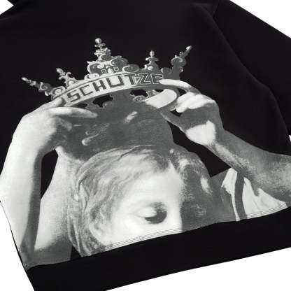 480gsm/ 100% preshrunk cotton/ screenprint on back/ hand embroidered pearl detail on front pocket/ fits true to size