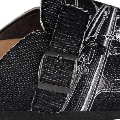 "faces" clogs black denim