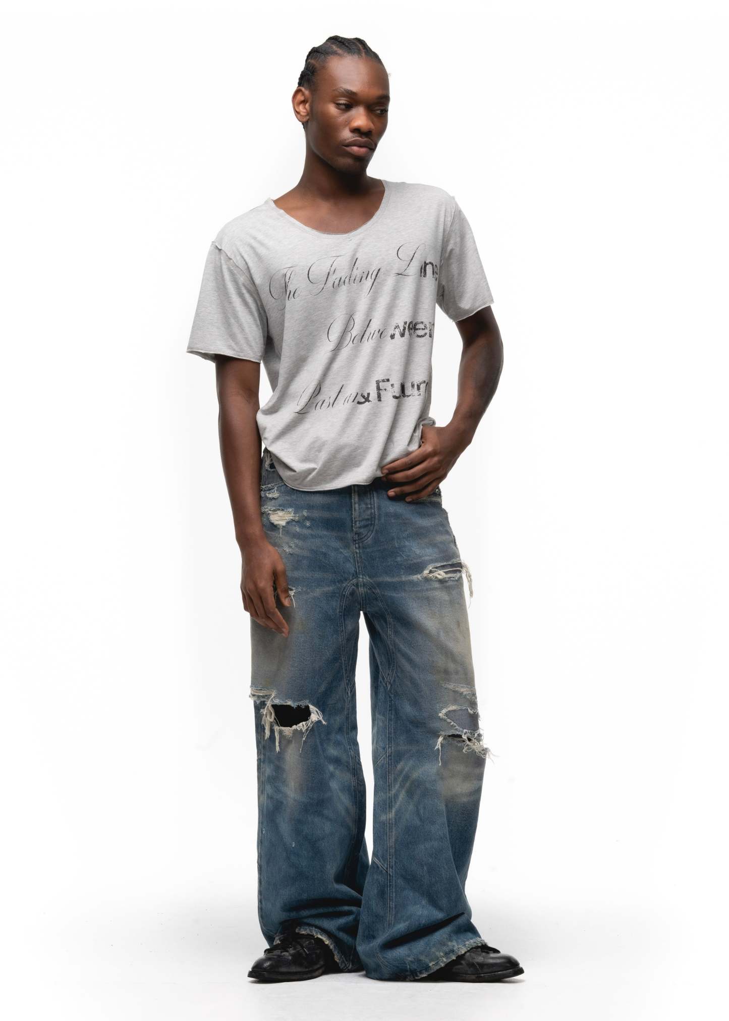 HIGH-QUALITY GREY T-SHIRT WITH A FADED TYPOGRAPHY PRINT DESIGNED FOR A RELAXED AND CASUAL LOOK