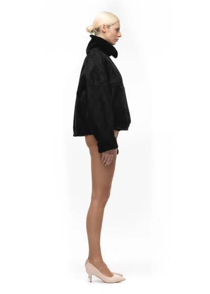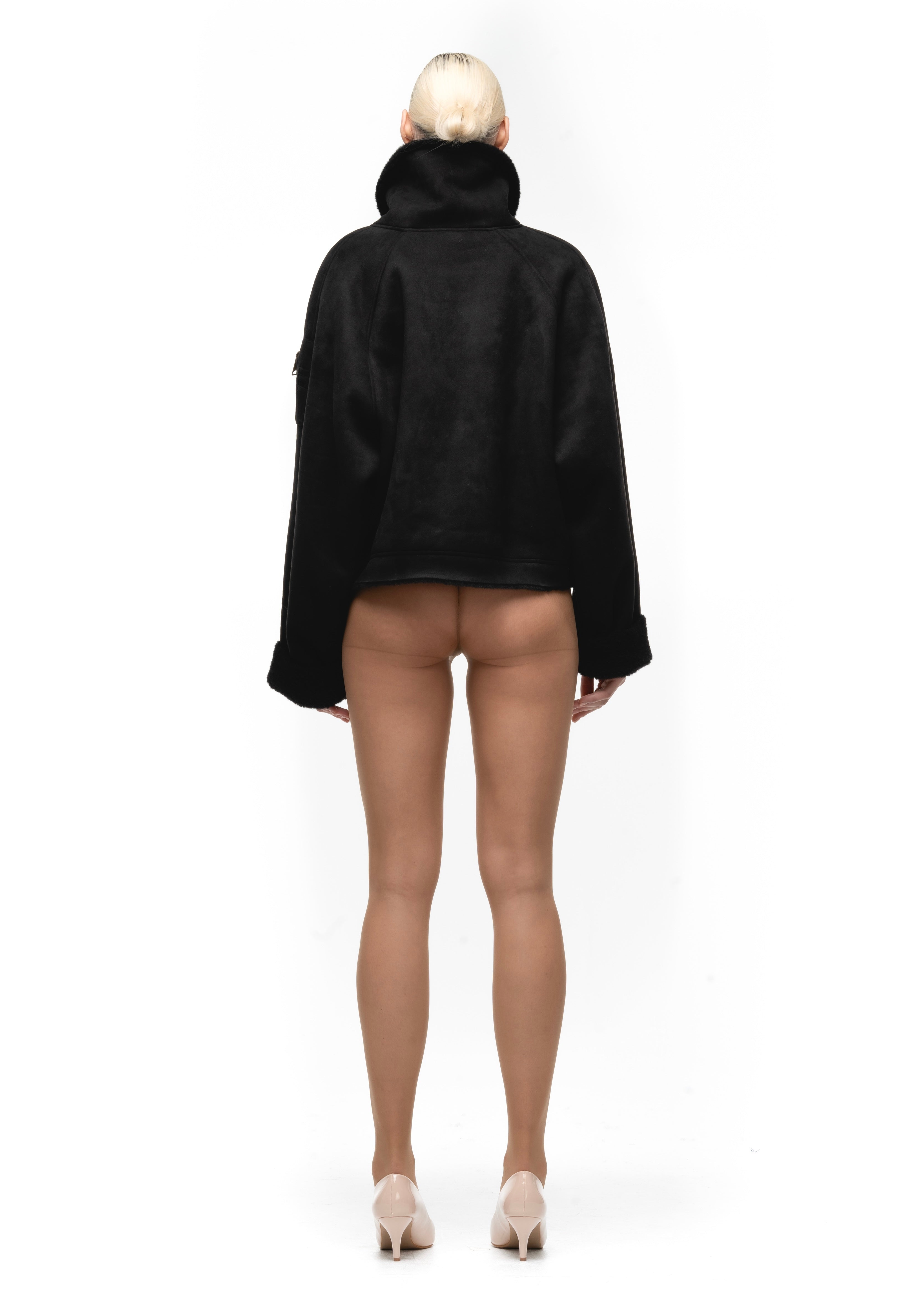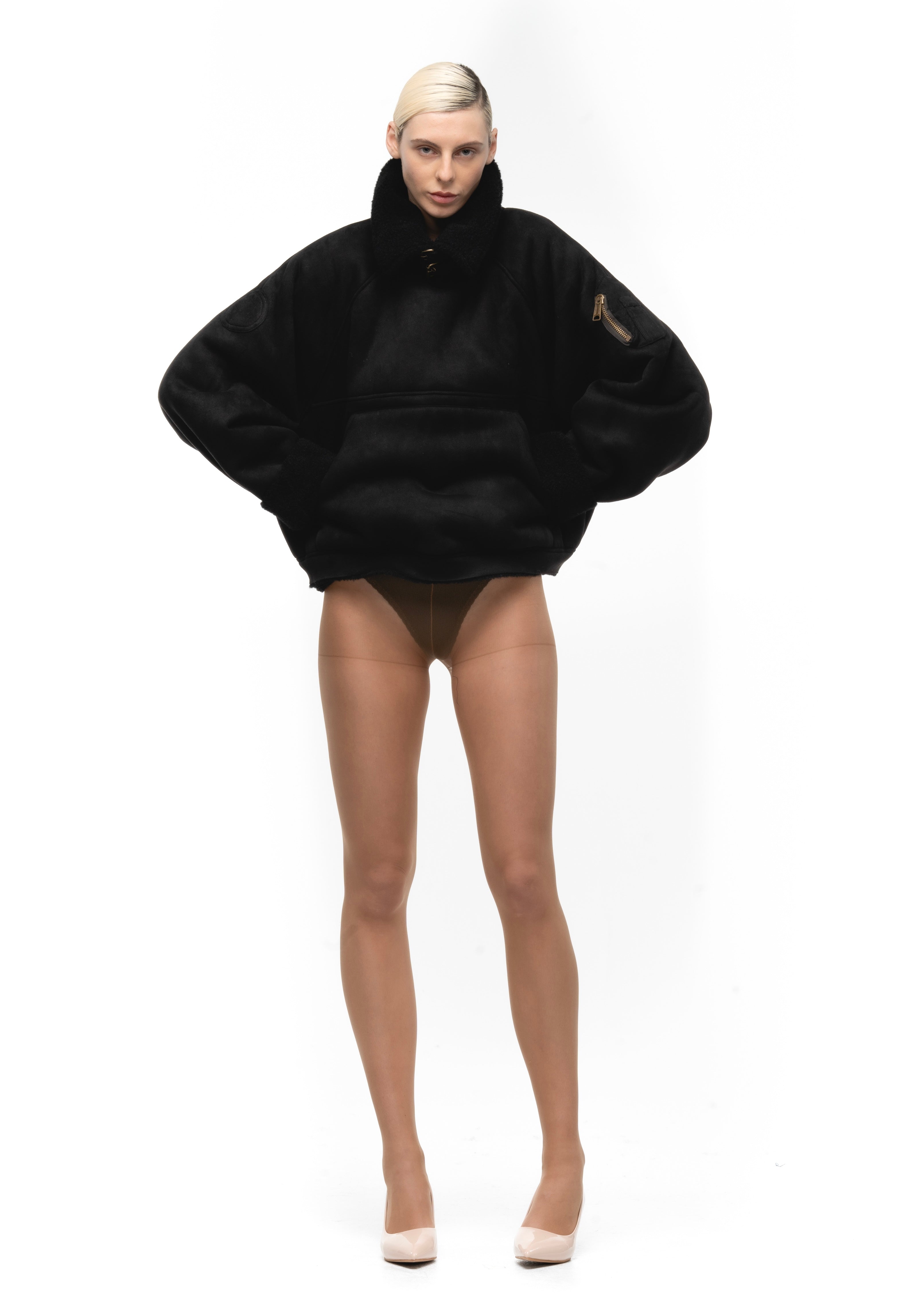 HEAVY FLIGHT SHEARLING HOODIE BLACK WOMEN'S CUT