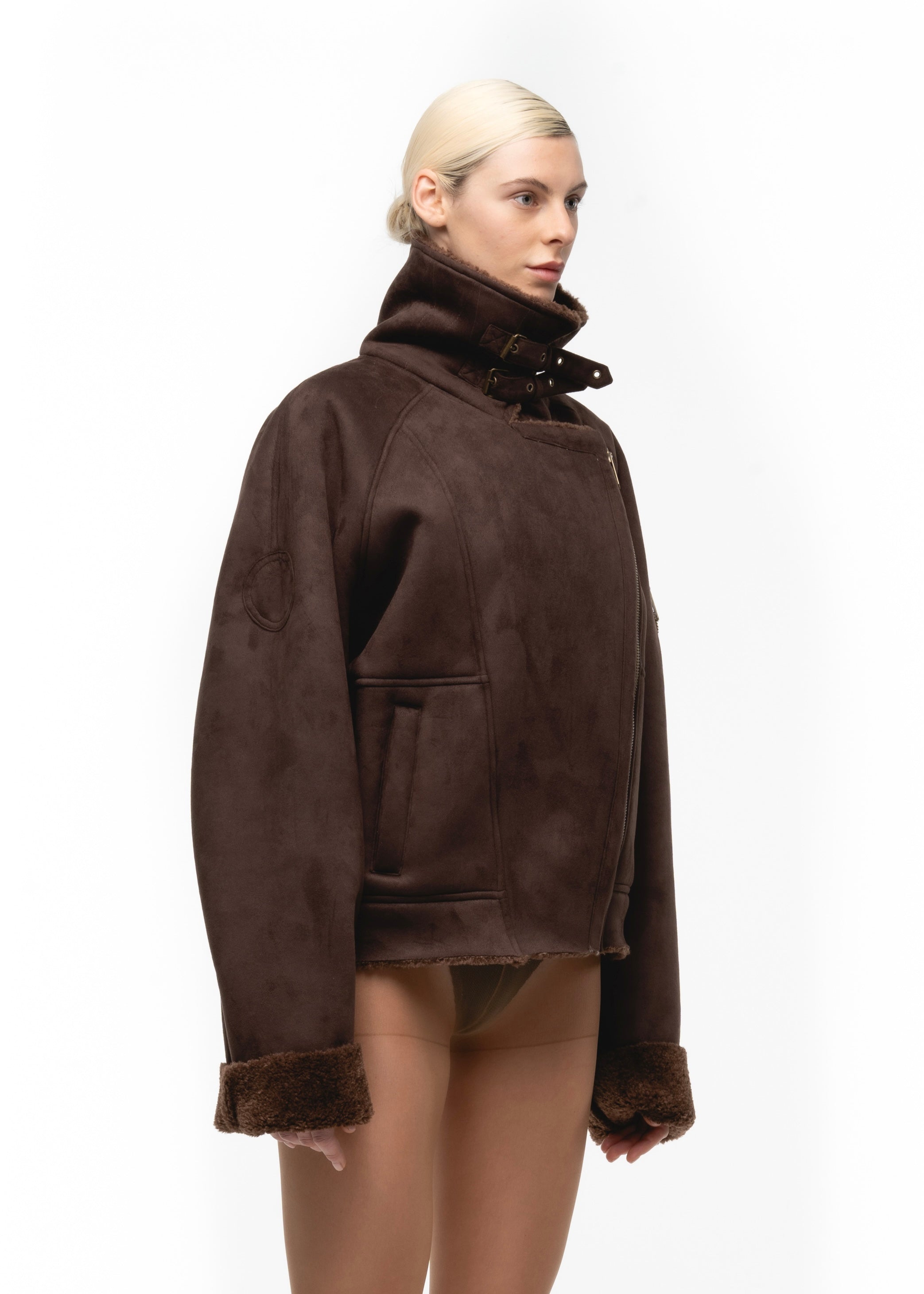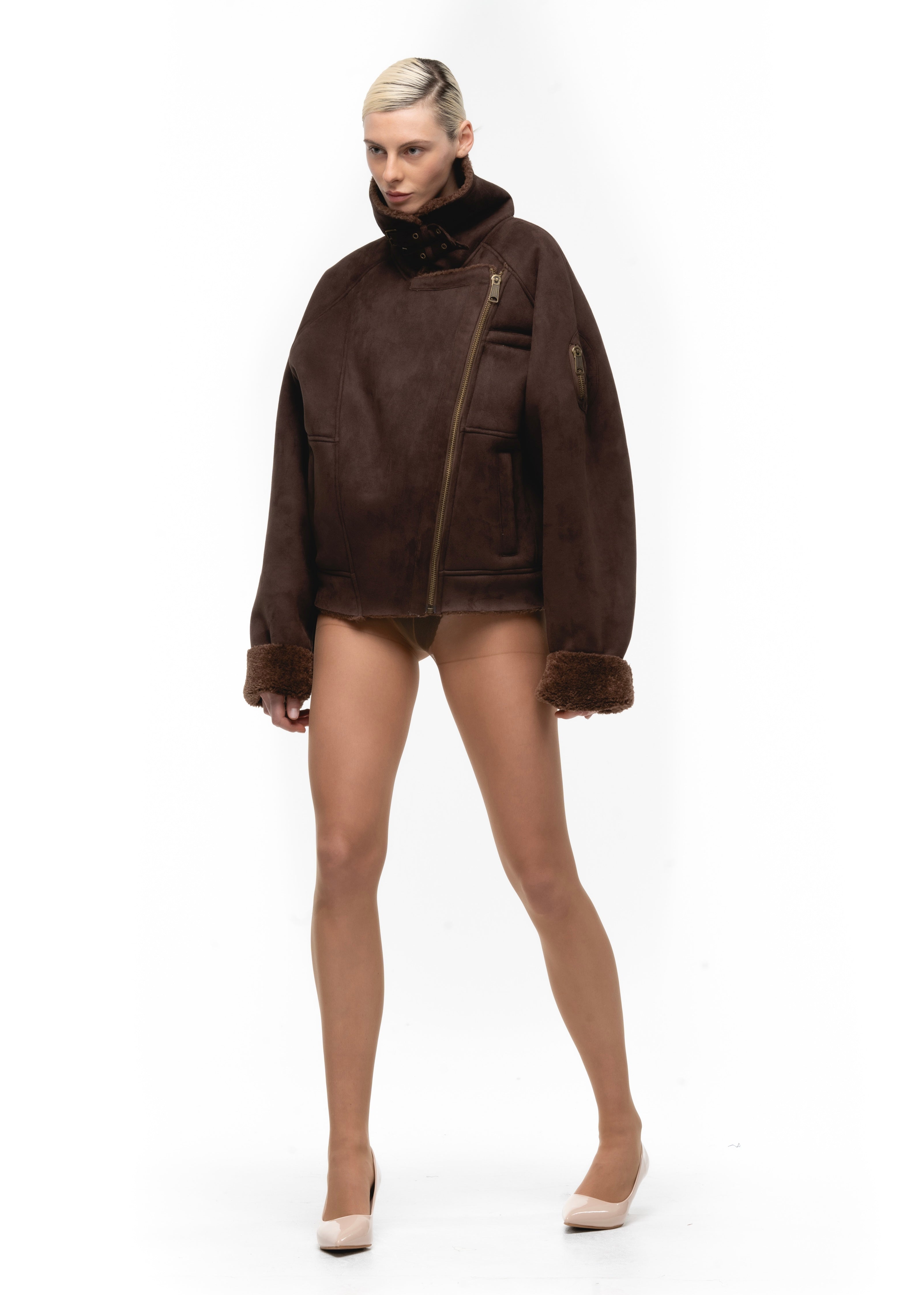 HEAVY FLIGHT SHEARLING JACKET BROWN WOMEN'S CUT