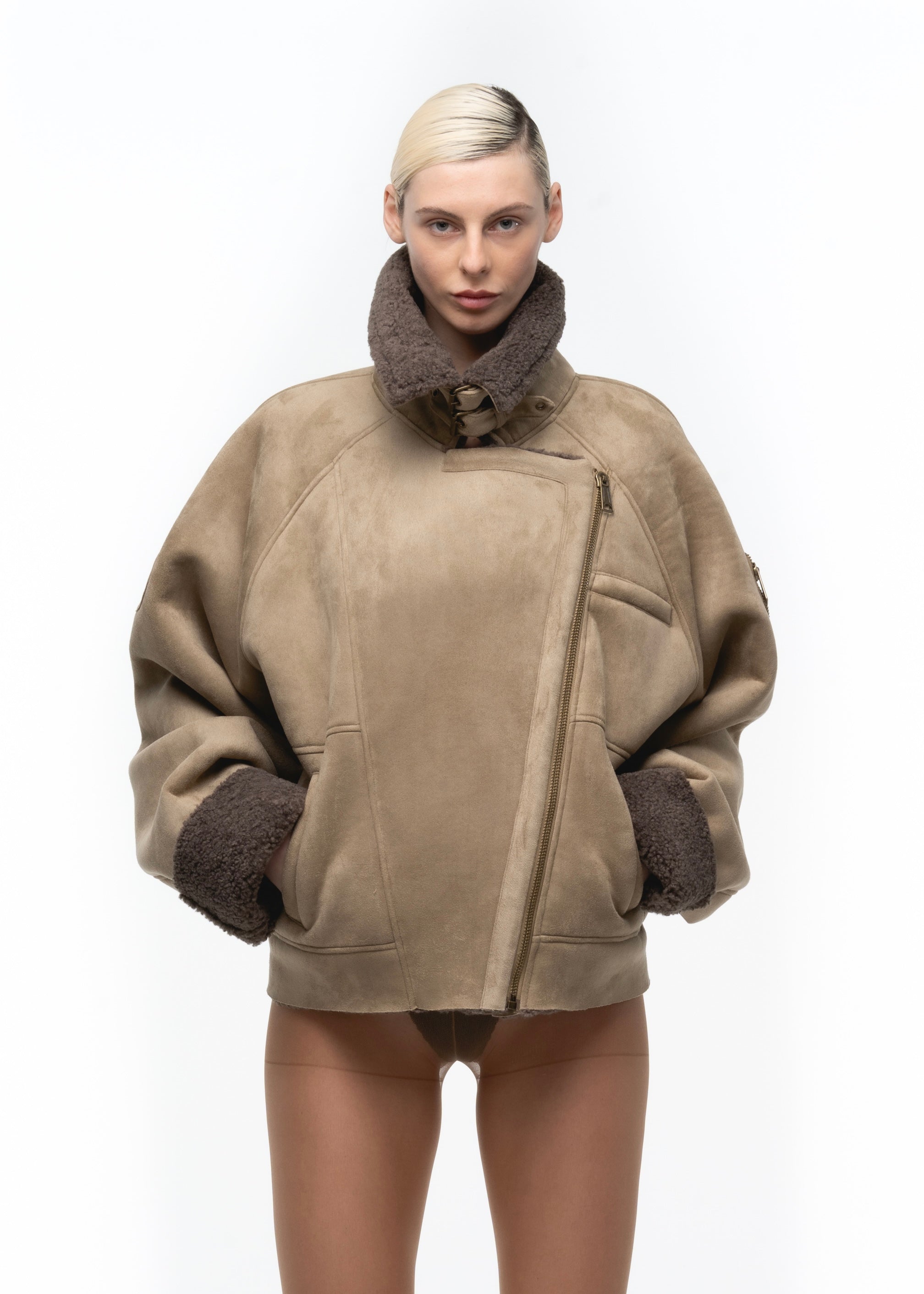 HEAVY FLIGHT SHEARLING JACKET DARK BEIGE WOMEN'S CUT