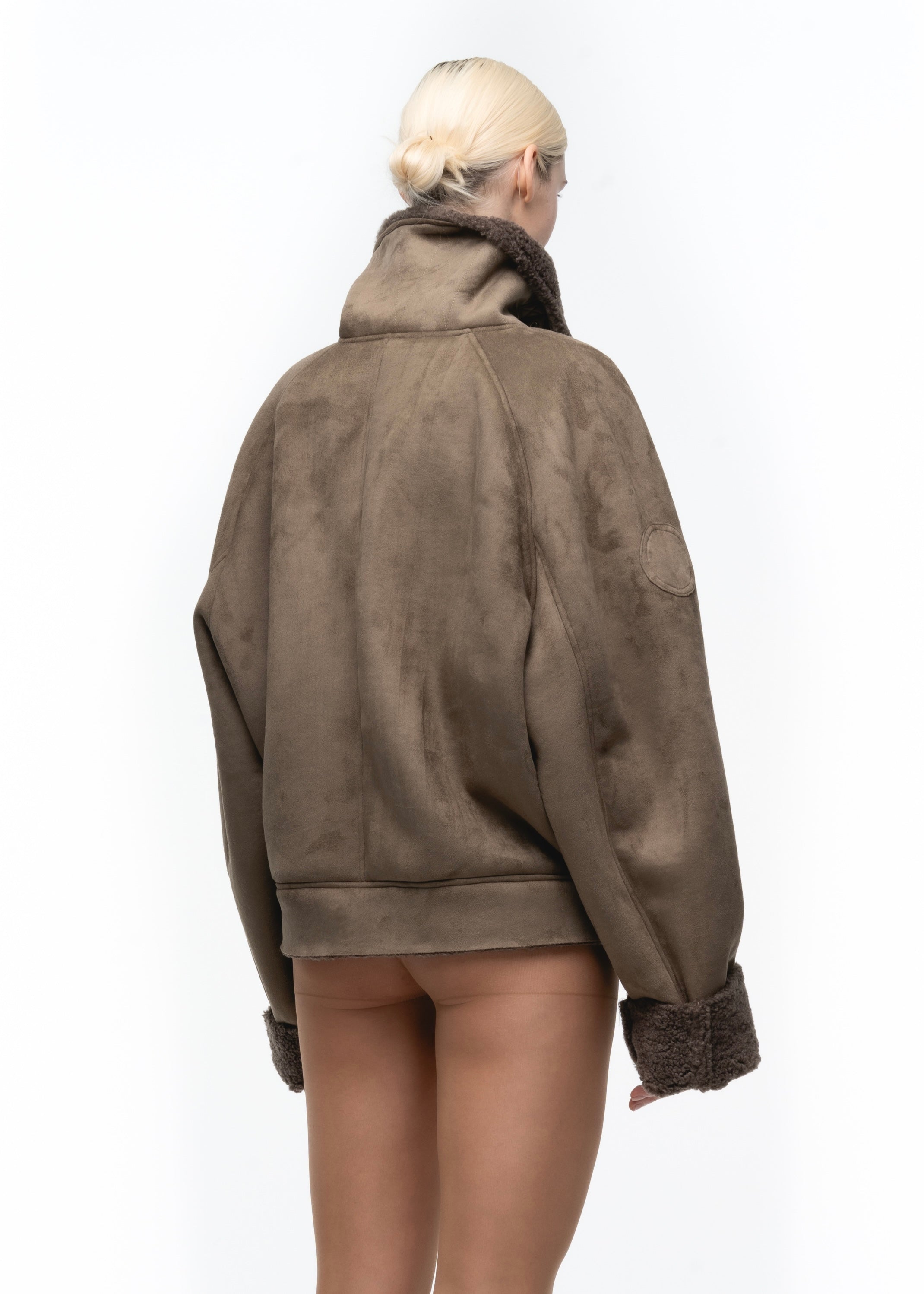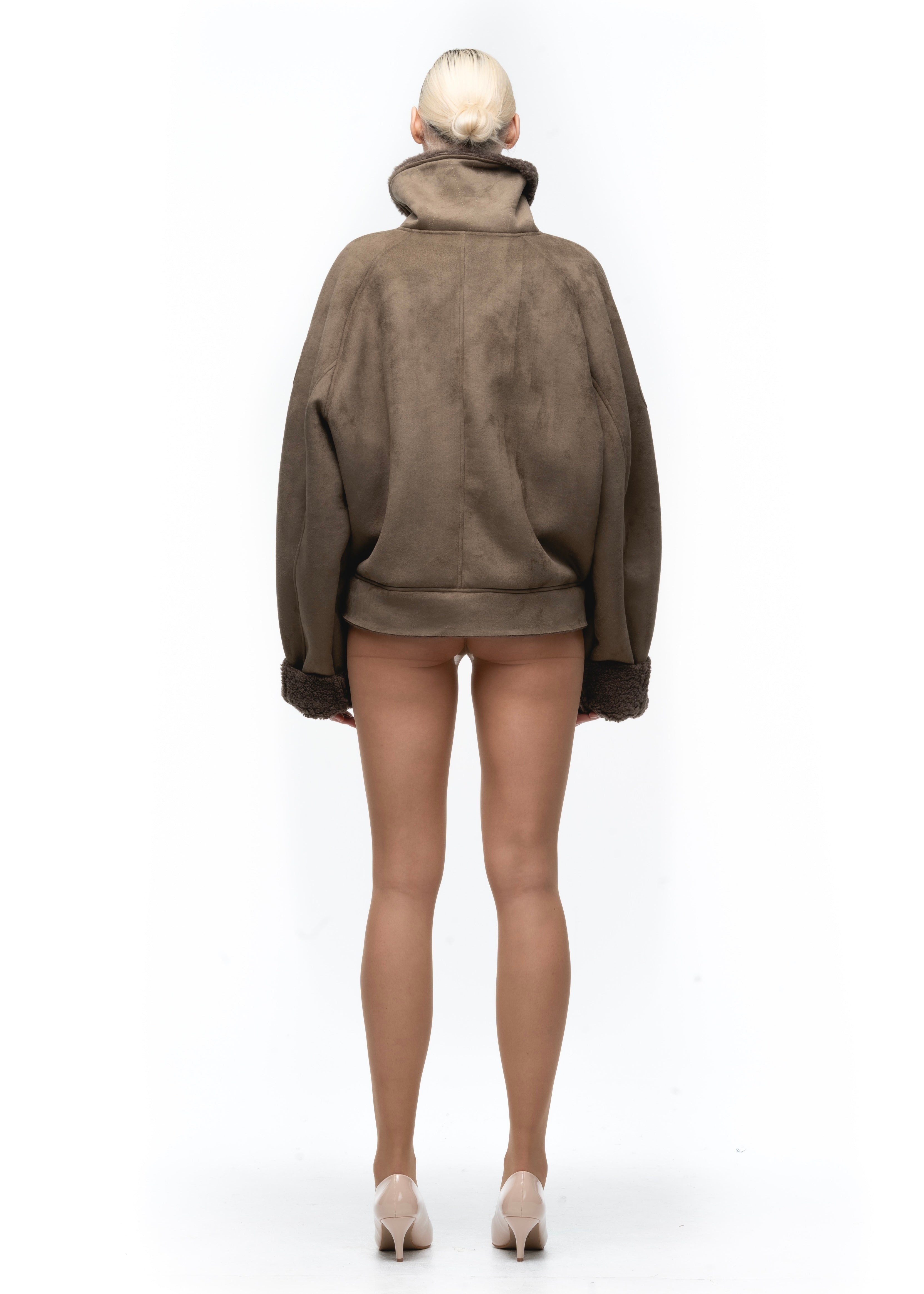HEAVY FLIGHT SHEARLING JACKET OLIVE WOMEN'S CUT