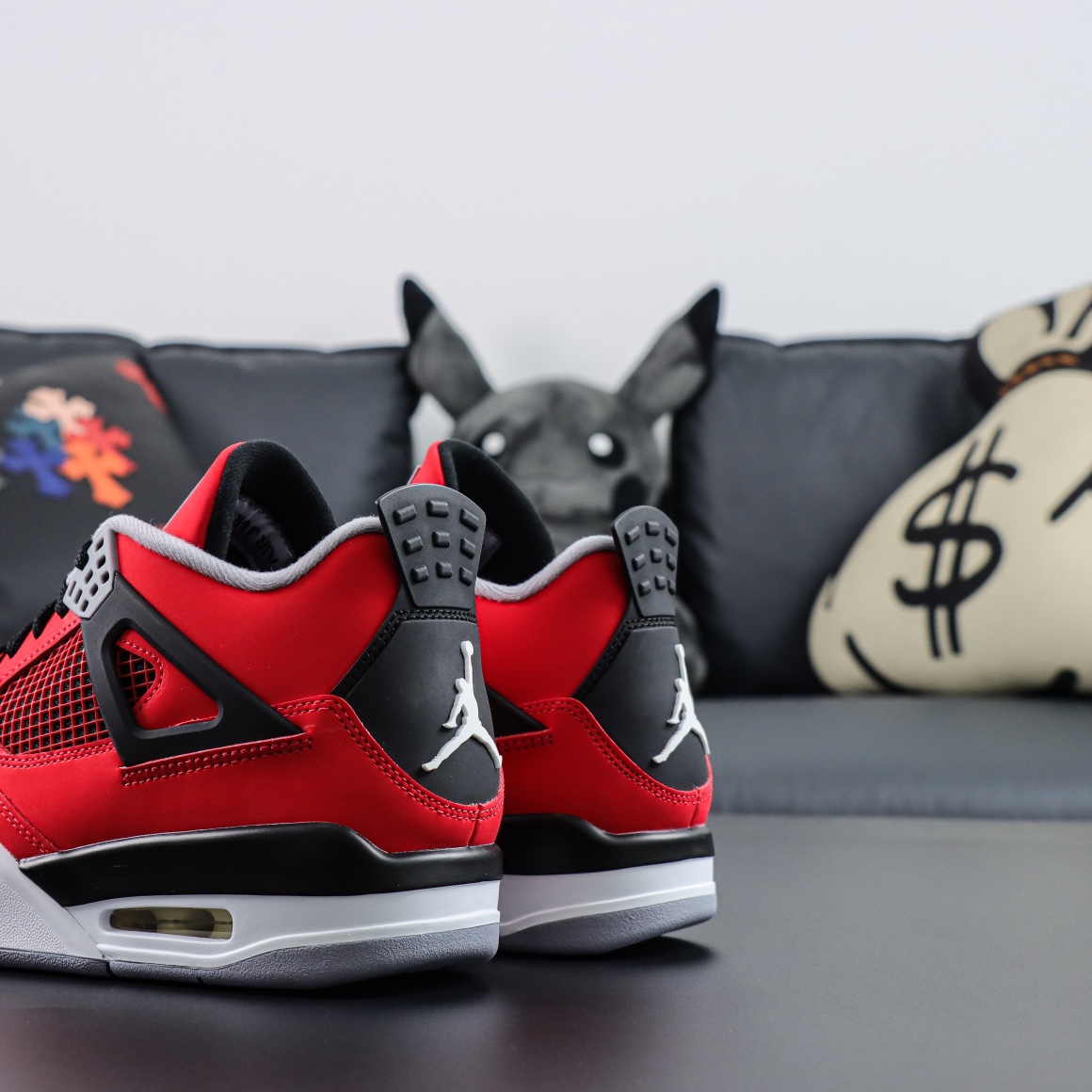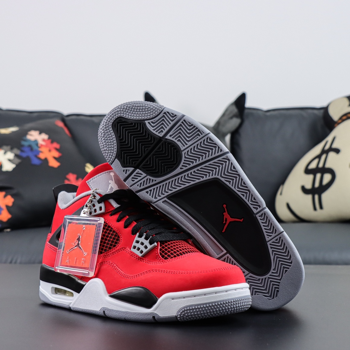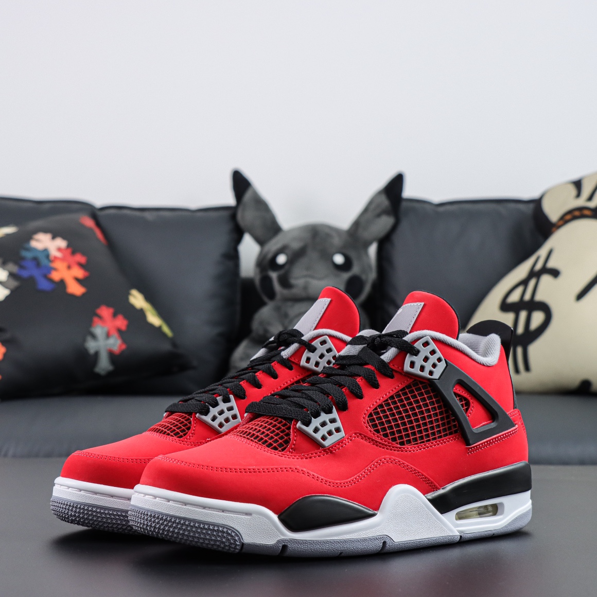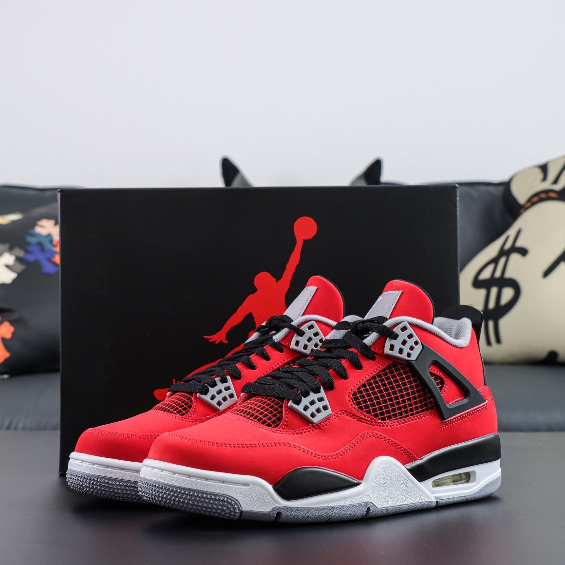 The Jordan 4 Toro Bravo Reps recreate the bold fire red edition of the Air Jordan 4 first released in 2013. This replica features rich red suede uppers, black mesh panels, and cement-grey details that stay true to the original layout.