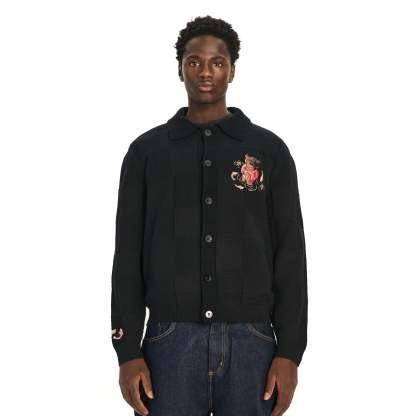 100% cotton / checkered knit pattern / embroidery on front and sleeve / custom buttons / fits true to size