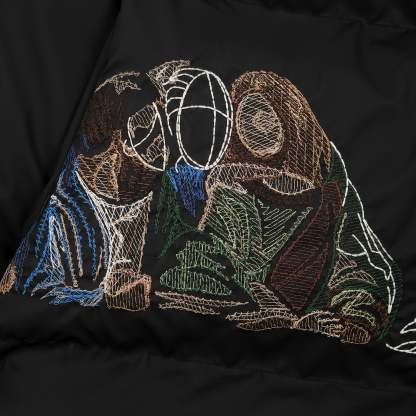 100% polyester / micro gel filling / embroidery on front and back / adjustable waistband / fits true to size