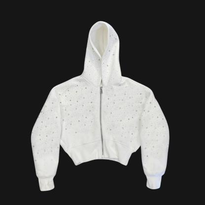 Make a bold entrance with the VYBES Women's Cropped Galaxy Hoodie��a signature piece where luxury streetwear meets interstellar drip. Designed for those who move different, this cropped hoodie blends eye-catching design with premium comfoxrt.