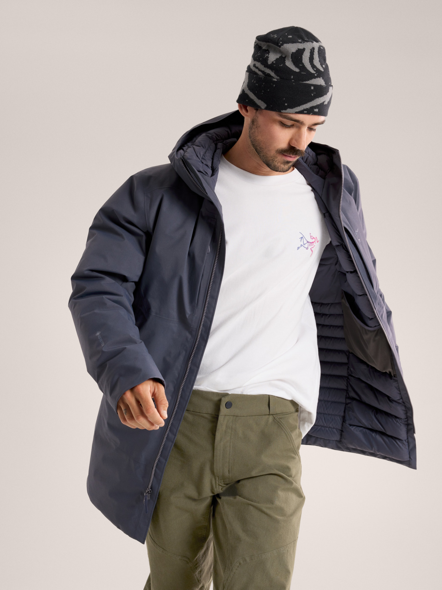 Warmth and weather protection built for every aspect of mountain life. The Ralle Down Parka – our warmest Ralle – combines goose-down insulation with PFAS-free GORE-TEX to seal out snow, wind, and rain. Its insulated StormHood has an integrated insulated collar for even more warmth, and multiple pockets provide storage. The length extends protection, and articulated patterning gives you freedom to move.