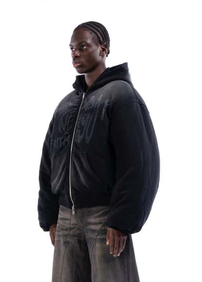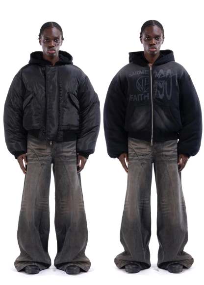 REVERSIBLE HOOD BOMBER JACKET BLACK