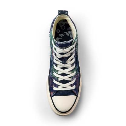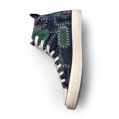 japanese style patchwork upper/ washed/ custom insole and outsole design/ embroidered back panels/ manufactured in China/ fits true to size