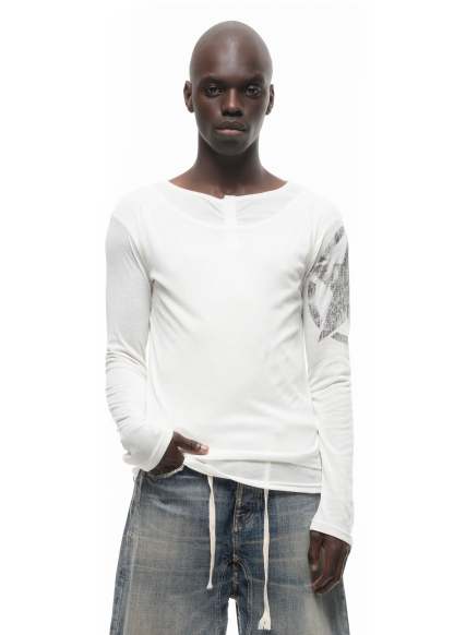 CRAFTED WITH A DOUBLE-LAYERED DESIGN, THIS STAR-DETAILED LONGSLEEVE OFFERS COMFORT AND A REFINED TEXTURED SURFACE. MADE FROM SOFT COTTON IN WHITE AND BLACK, IT PRESENTS A VERSATILE EVERYDAY SILHOUETTE.