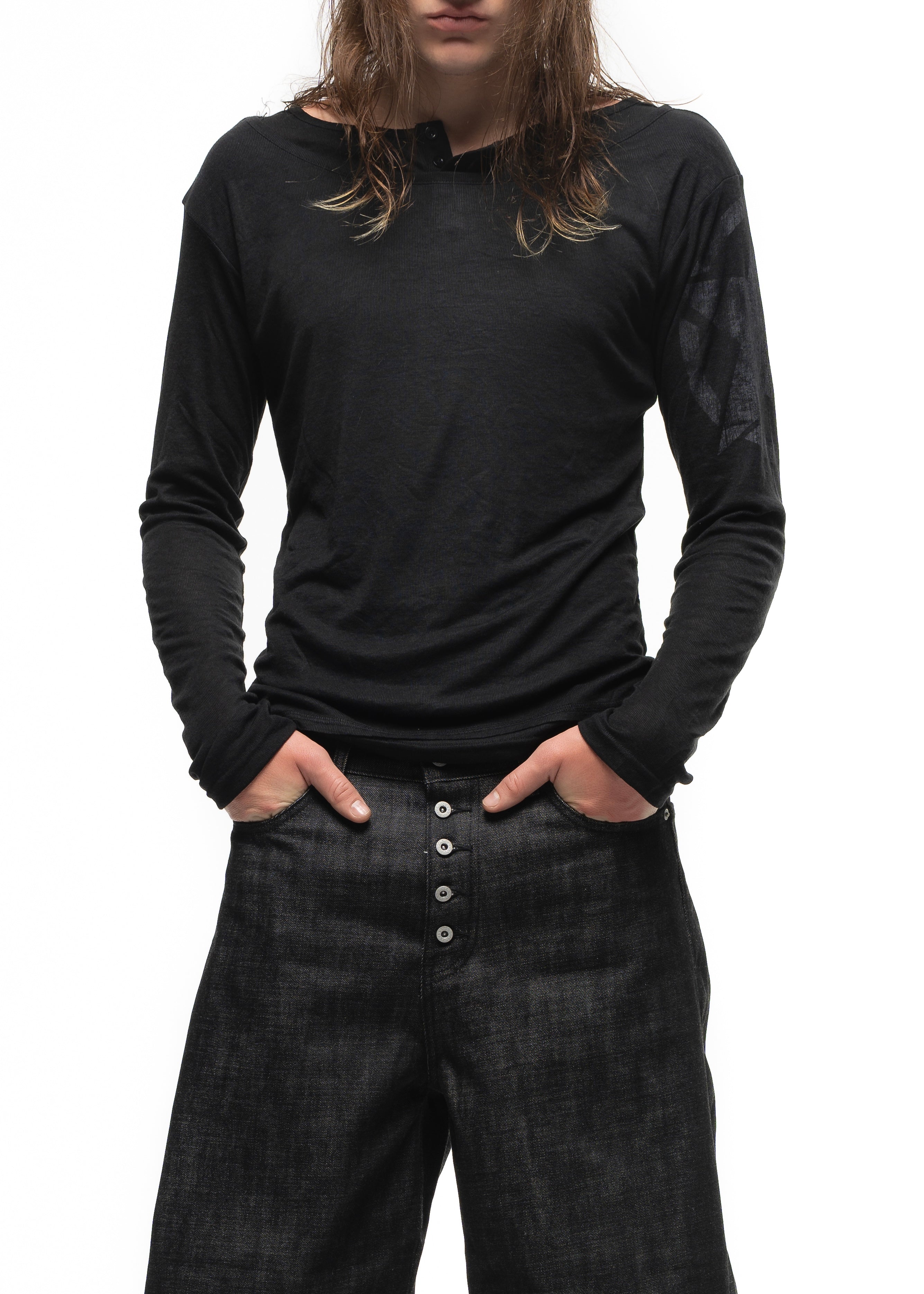 STAR SLEEVE DOUBLE-LAYERED BUTTON LONGSLEEVE BLACK