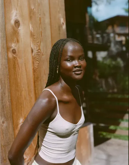 - Soft & stretchy waffle textured seamless fabric with colorful confetti details in a tank top silhouette.