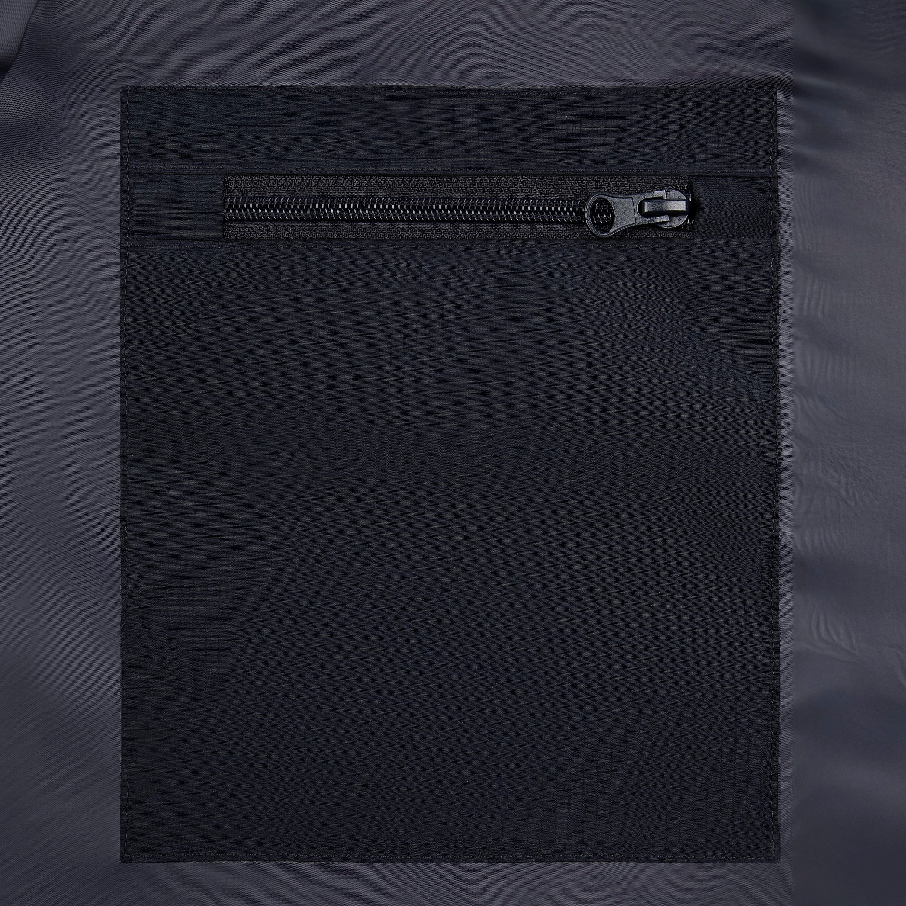 100% polyester water repellent fabric / 10oz denim / micro gel filling / embroidery on front-back yokes and sleeves / removable hood / adjustable waistband / fits true to size