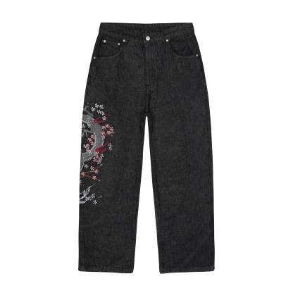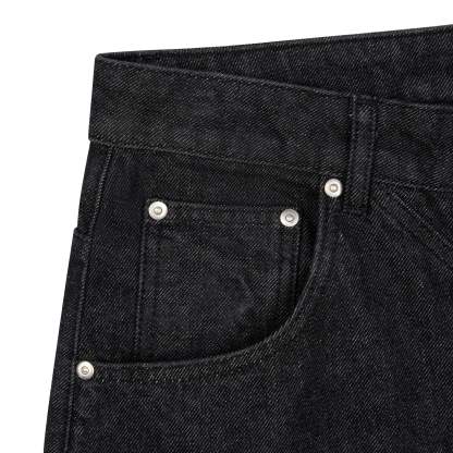 14,5oz raw denim / 100% cotton / diagonal-cut / embroidery on front and back / wash inside out / straight fit / fits true to size