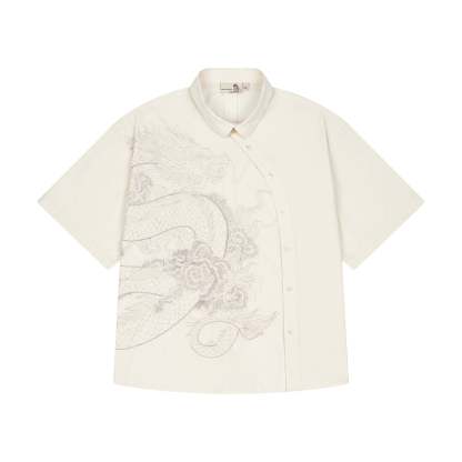 popline fabric / 100% cotton / embroidery on front / asymmetrical fly with custom buttons / box pleat on back / regular fit / fits true to size