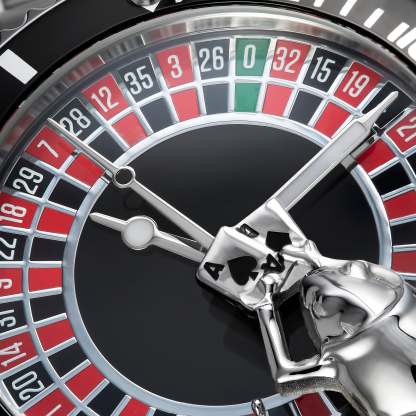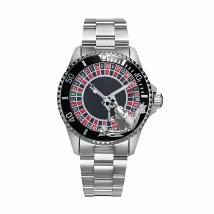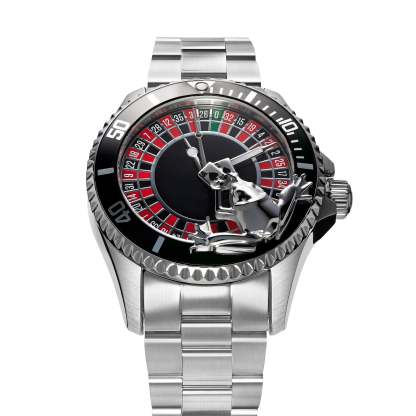 THIS IS A 90 DAY PREORDER / solid stainless steel / JAPANESE MIYOTA 8215 automatic movement / rotating unique roulette table / frog playing card ontop of the watch / luminous effect / up to 10 ATM (waterproof) / approx. 43mm
